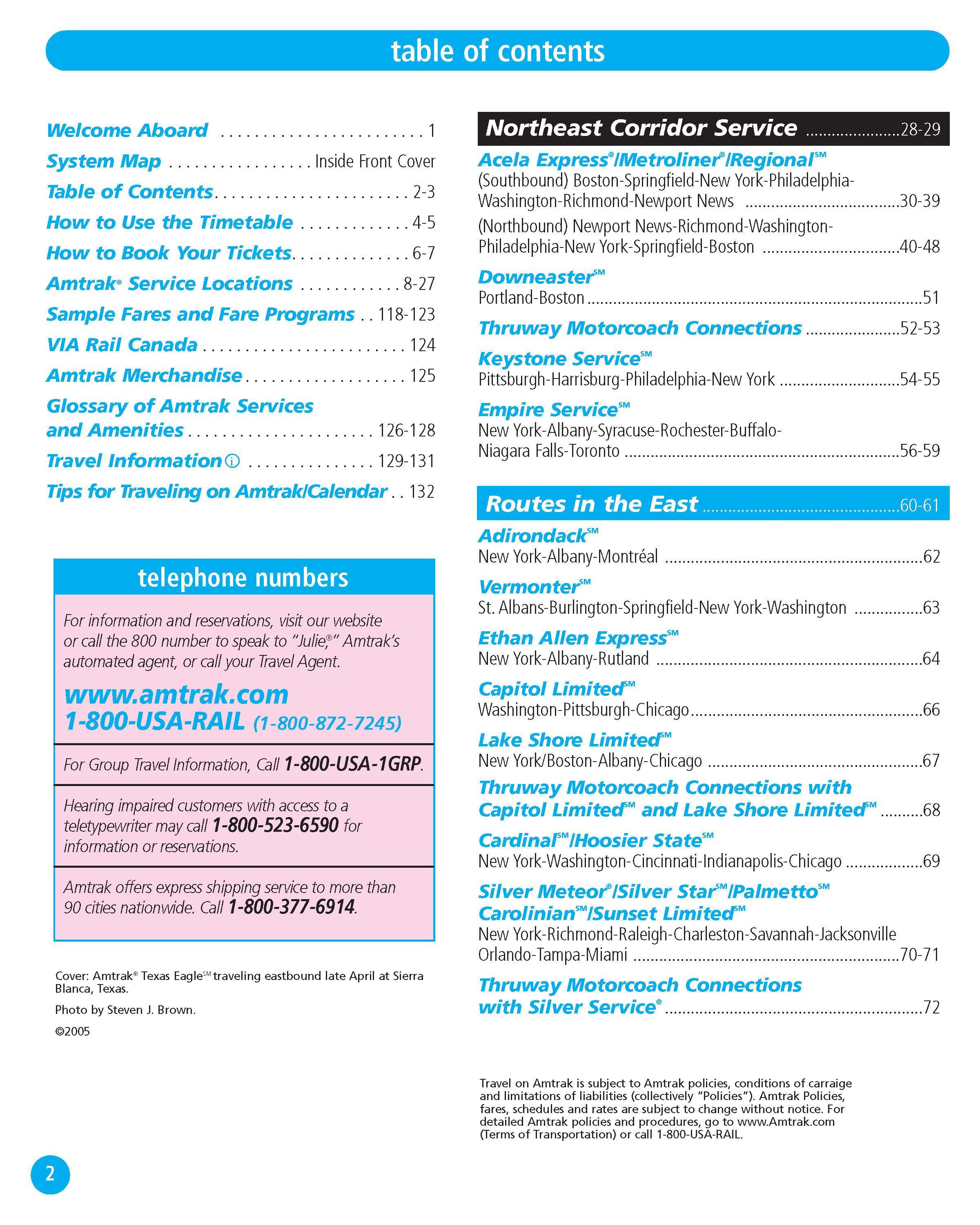 This timetable image is ©2005 National Railroad Passenger Corporation (Amtrak).