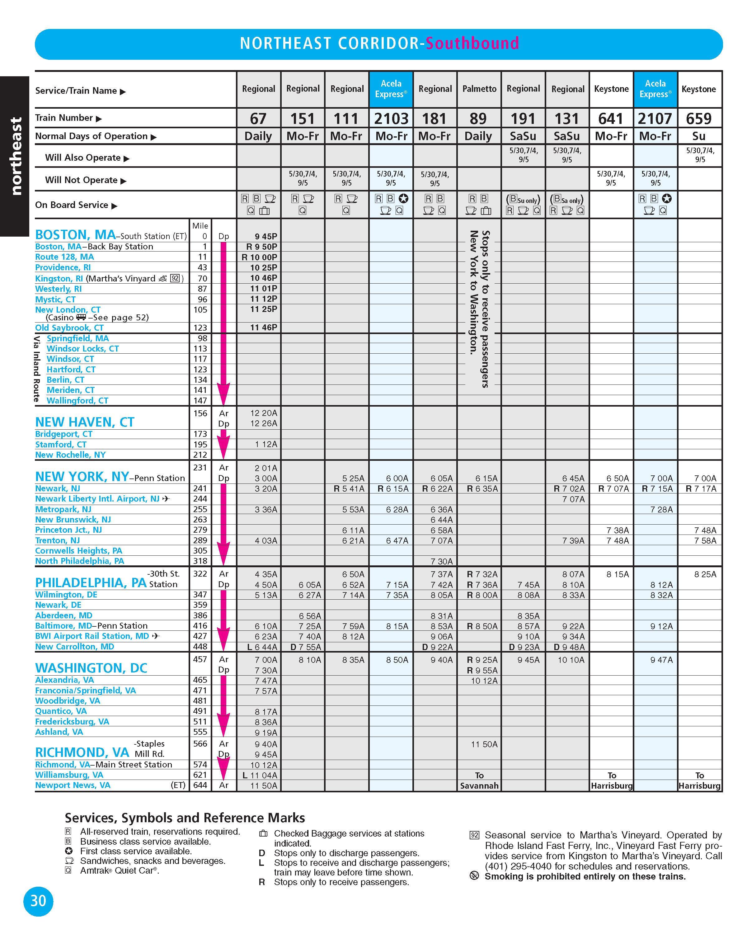 This timetable image is ©2005 National Railroad Passenger Corporation (Amtrak).