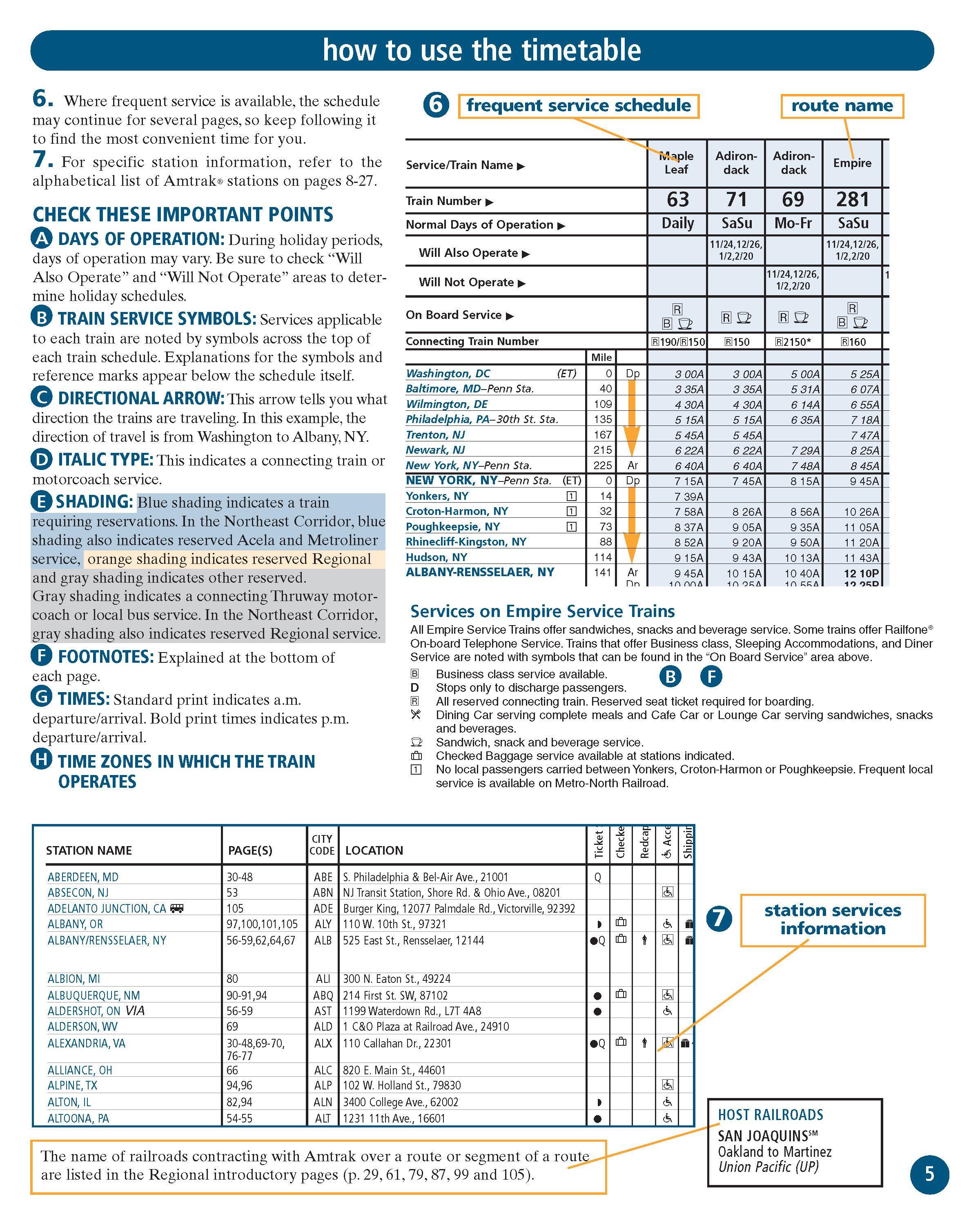 This timetable image is ©2005 National Railroad Passenger Corporation (Amtrak).