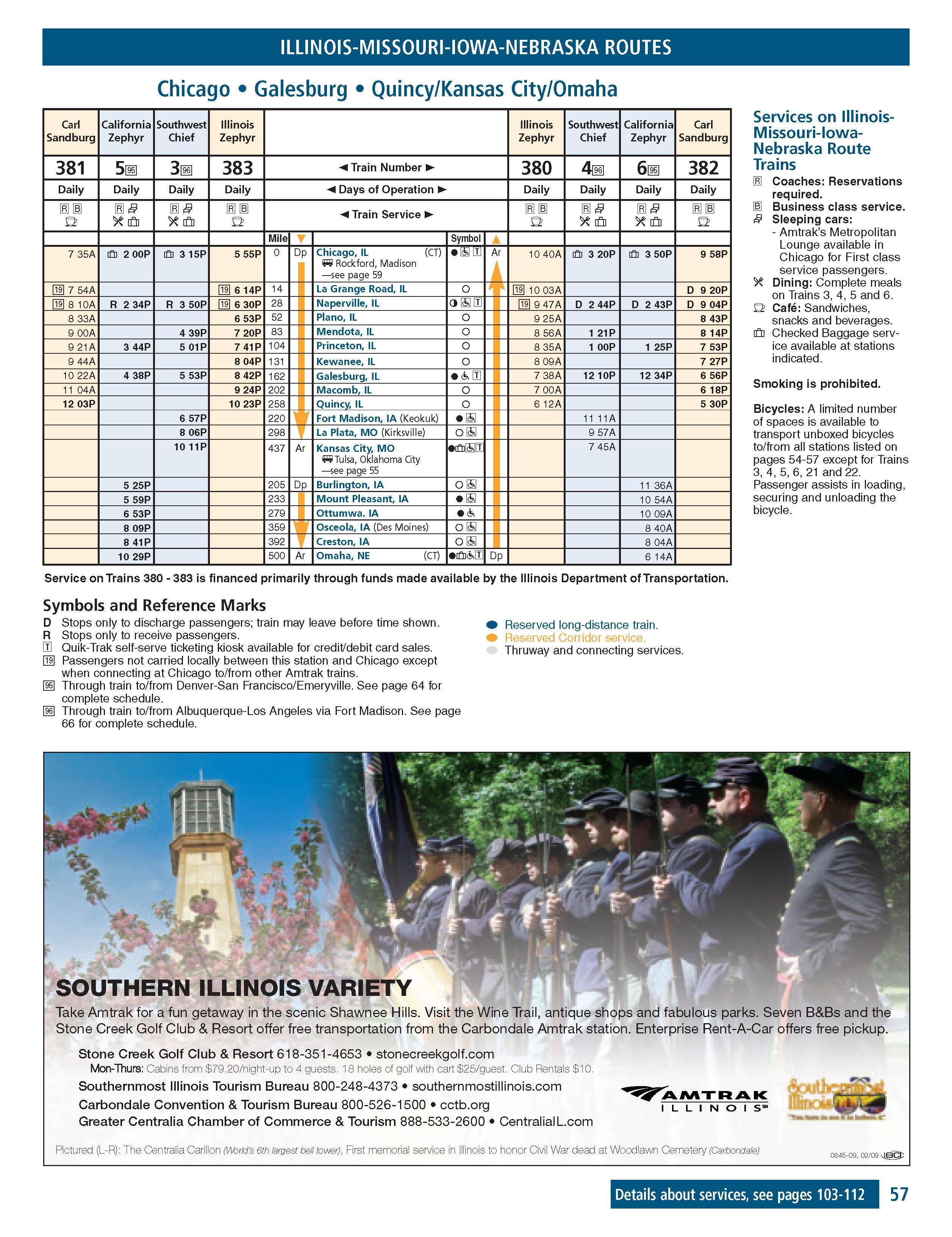 This timetable image is ©2009 National Railroad Passenger Corporation (Amtrak).