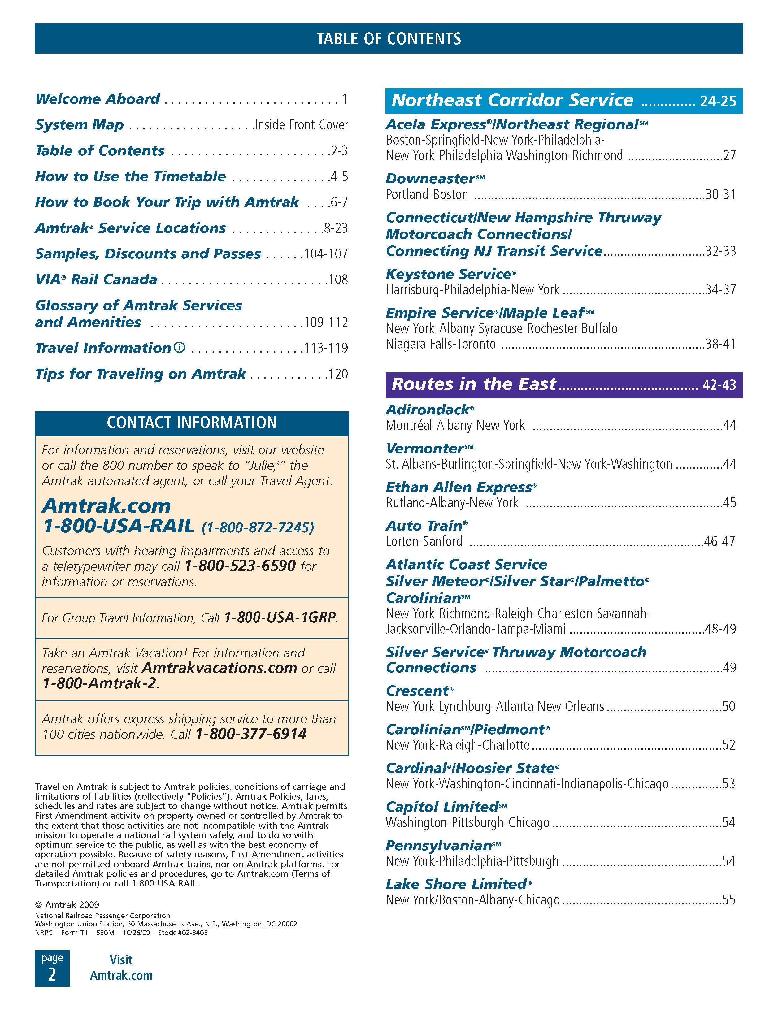 This timetable image is ©2009 National Railroad Passenger Corporation (Amtrak).