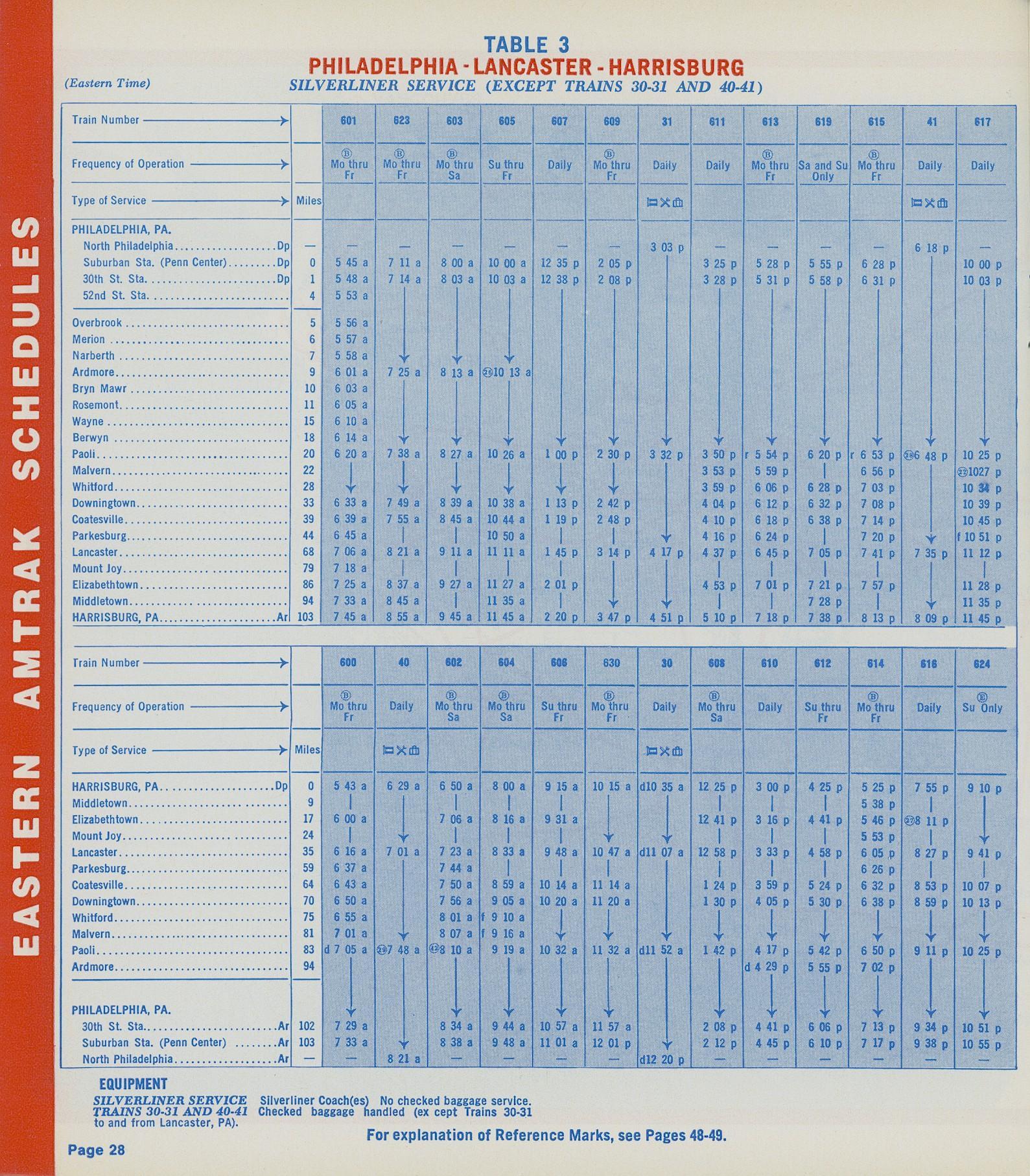 This timetable image is ©1973 National Railroad Passenger Corporation (Amtrak).