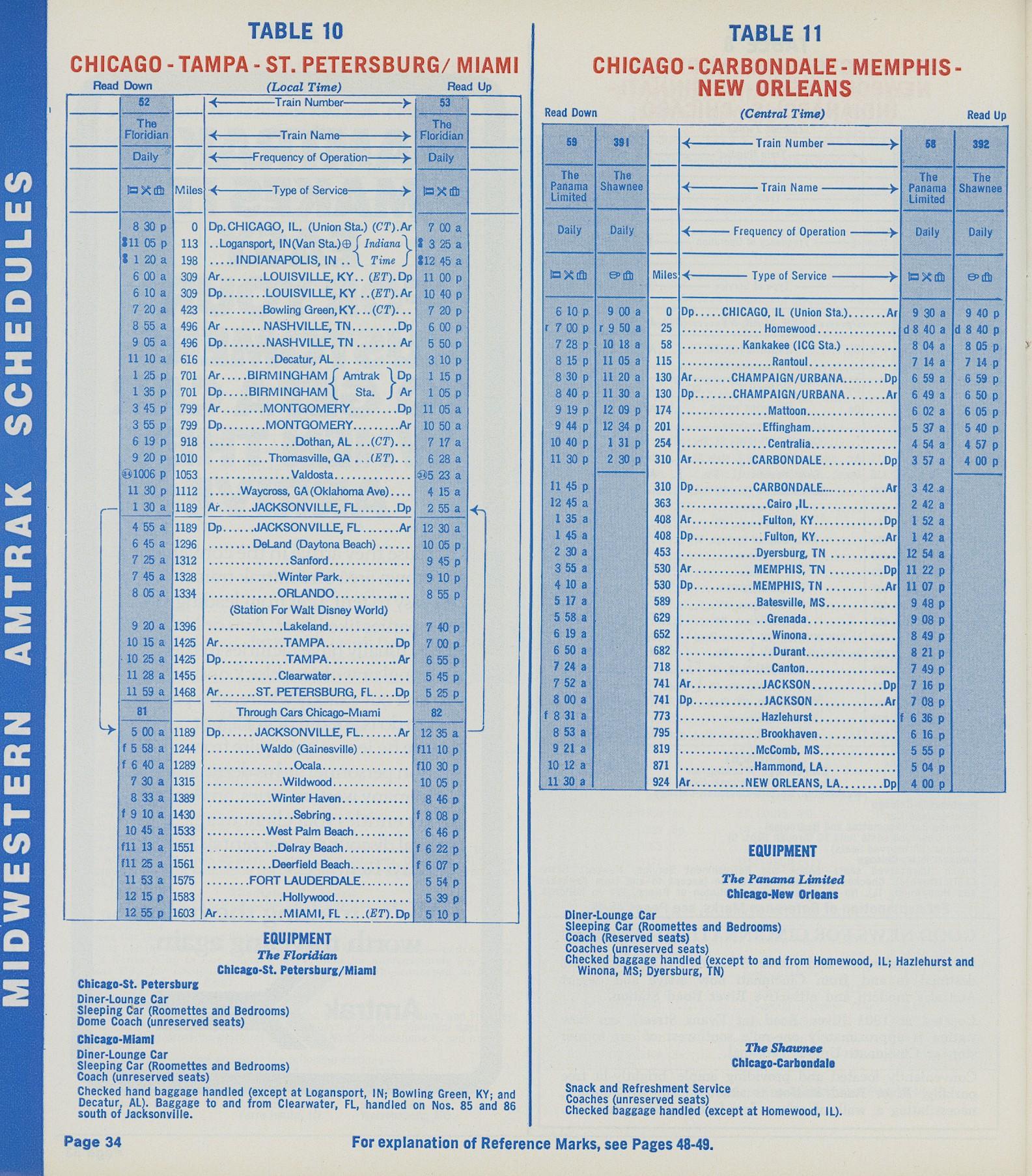 This timetable image is ©1973 National Railroad Passenger Corporation (Amtrak).