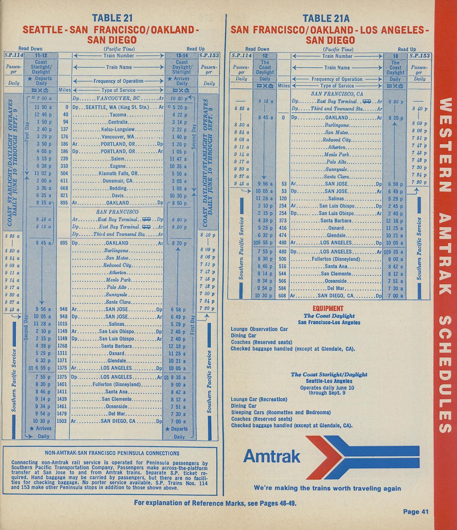 This timetable image is ©1973 National Railroad Passenger Corporation (Amtrak).