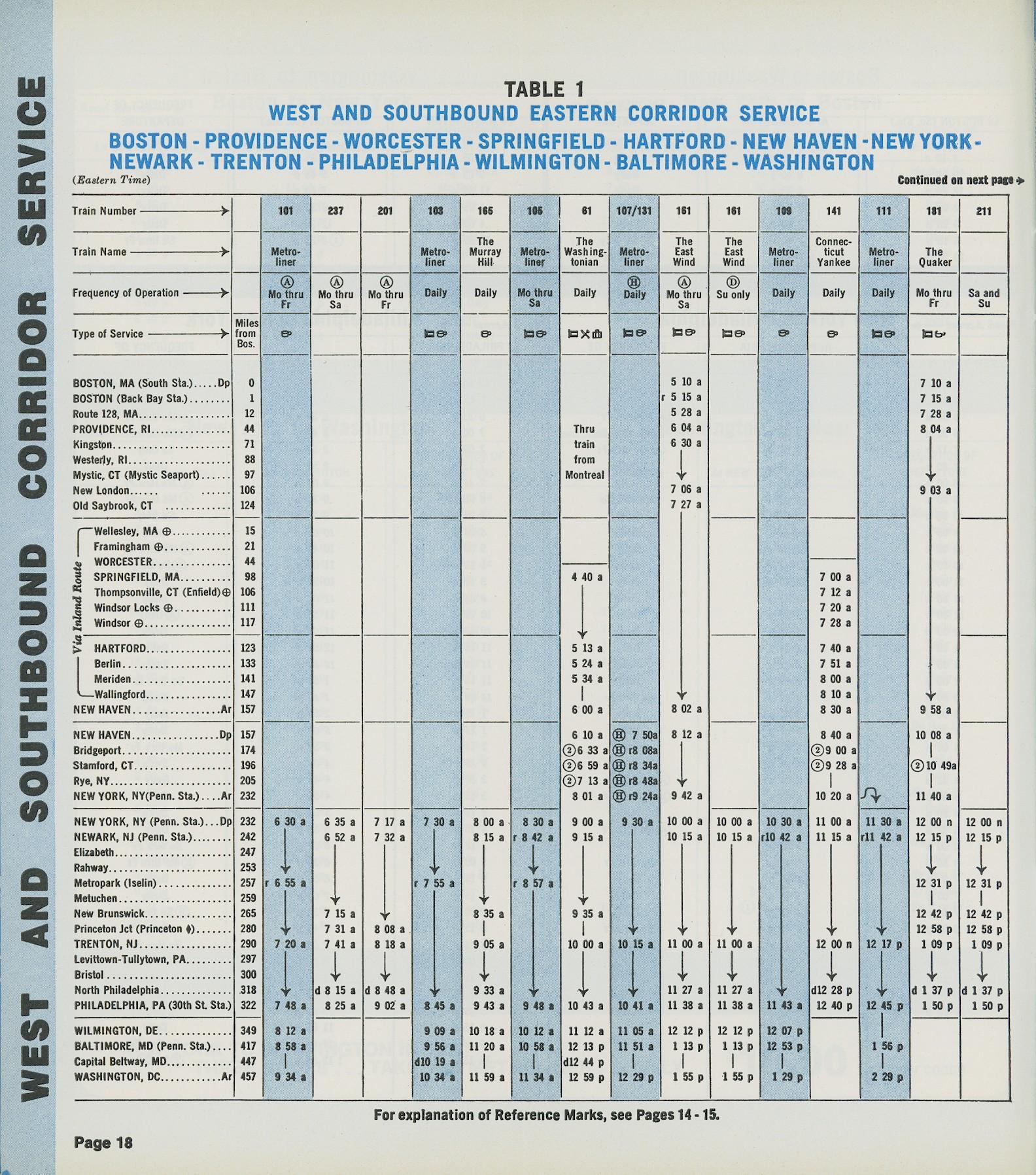 This timetable image is ©1973 National Railroad Passenger Corporation (Amtrak).