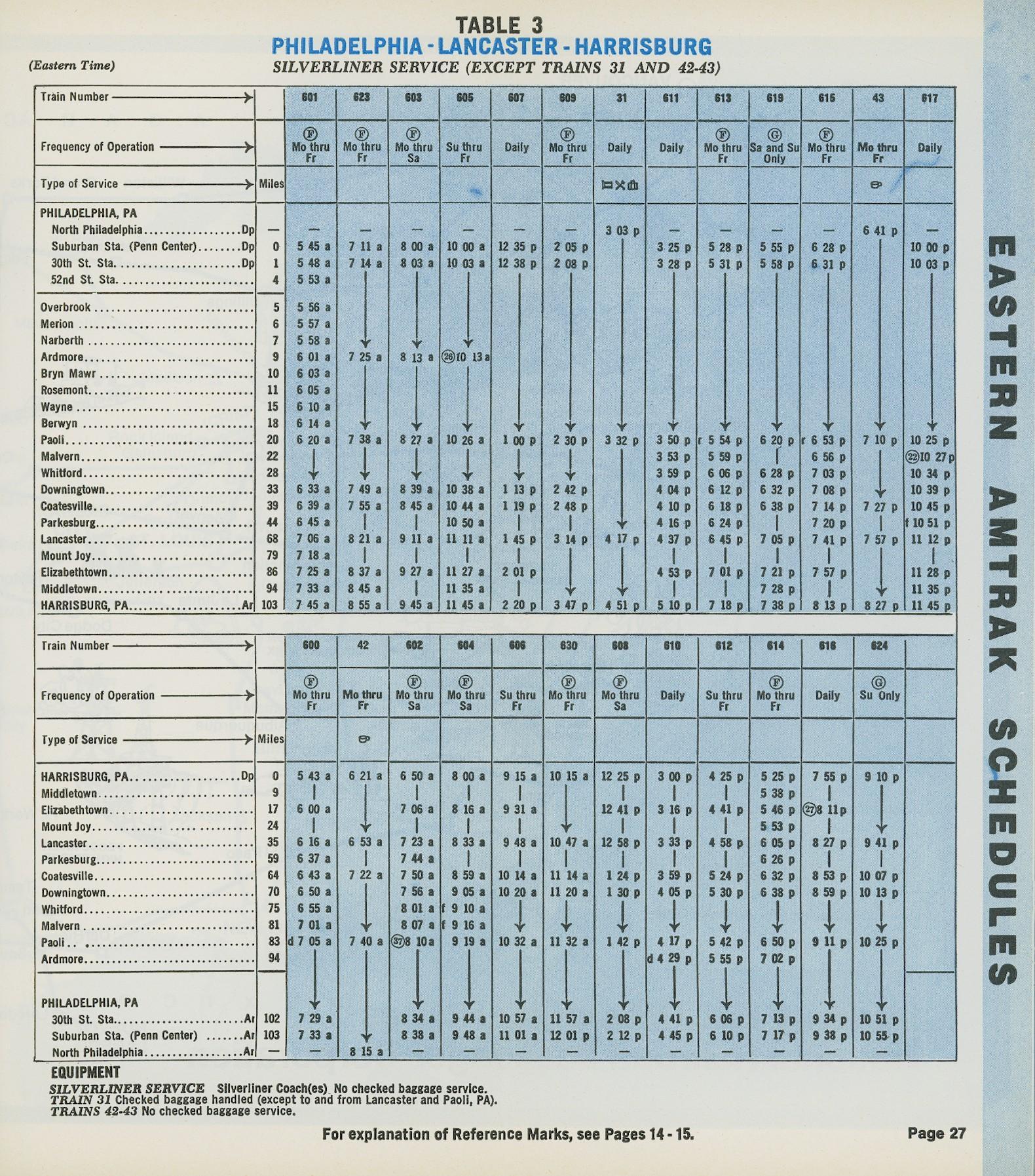 This timetable image is ©1973 National Railroad Passenger Corporation (Amtrak).