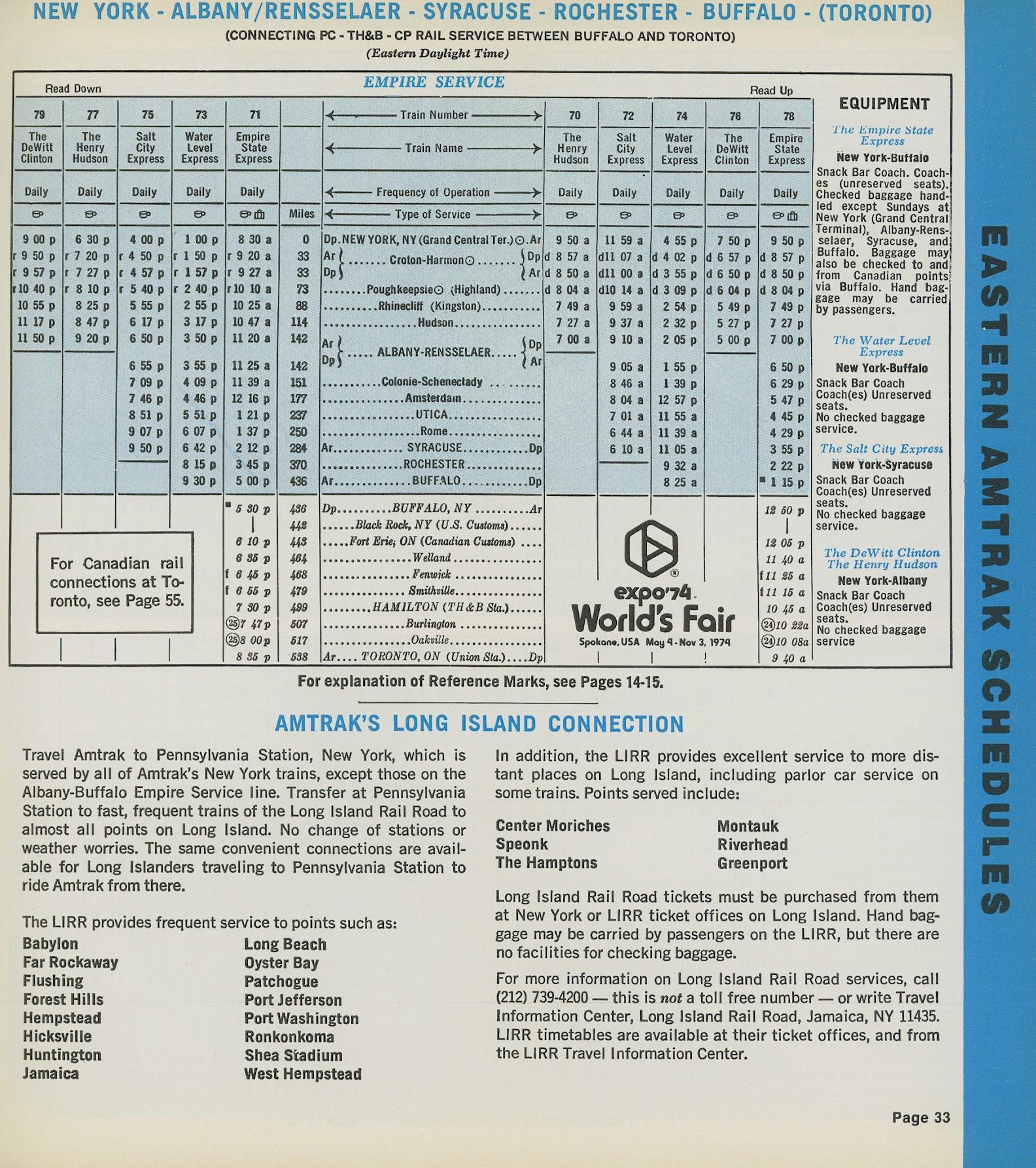 This timetable image is ©1974 National Railroad Passenger Corporation (Amtrak).