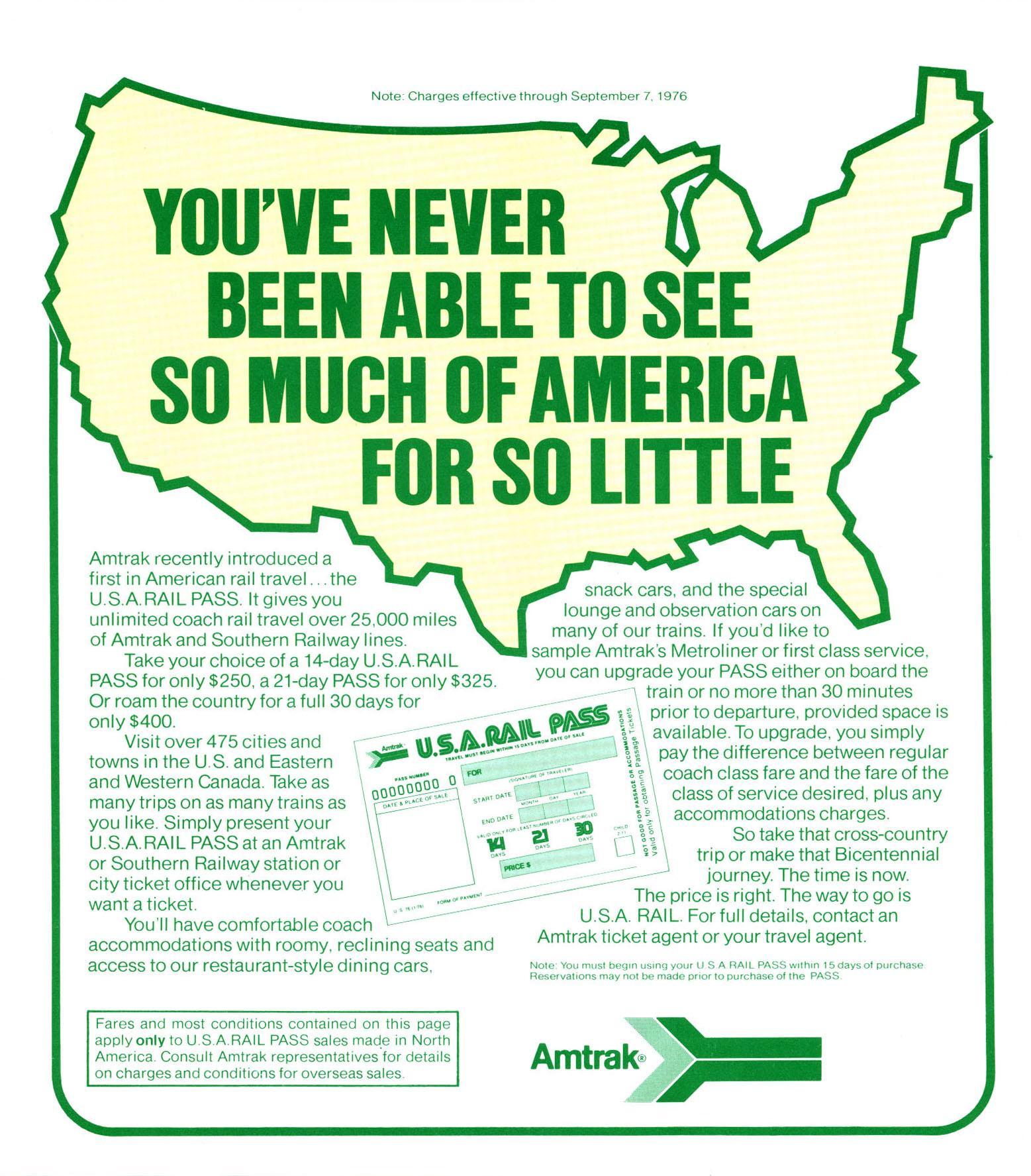 This timetable image is ©1976 National Railroad Passenger Corporation (Amtrak).
