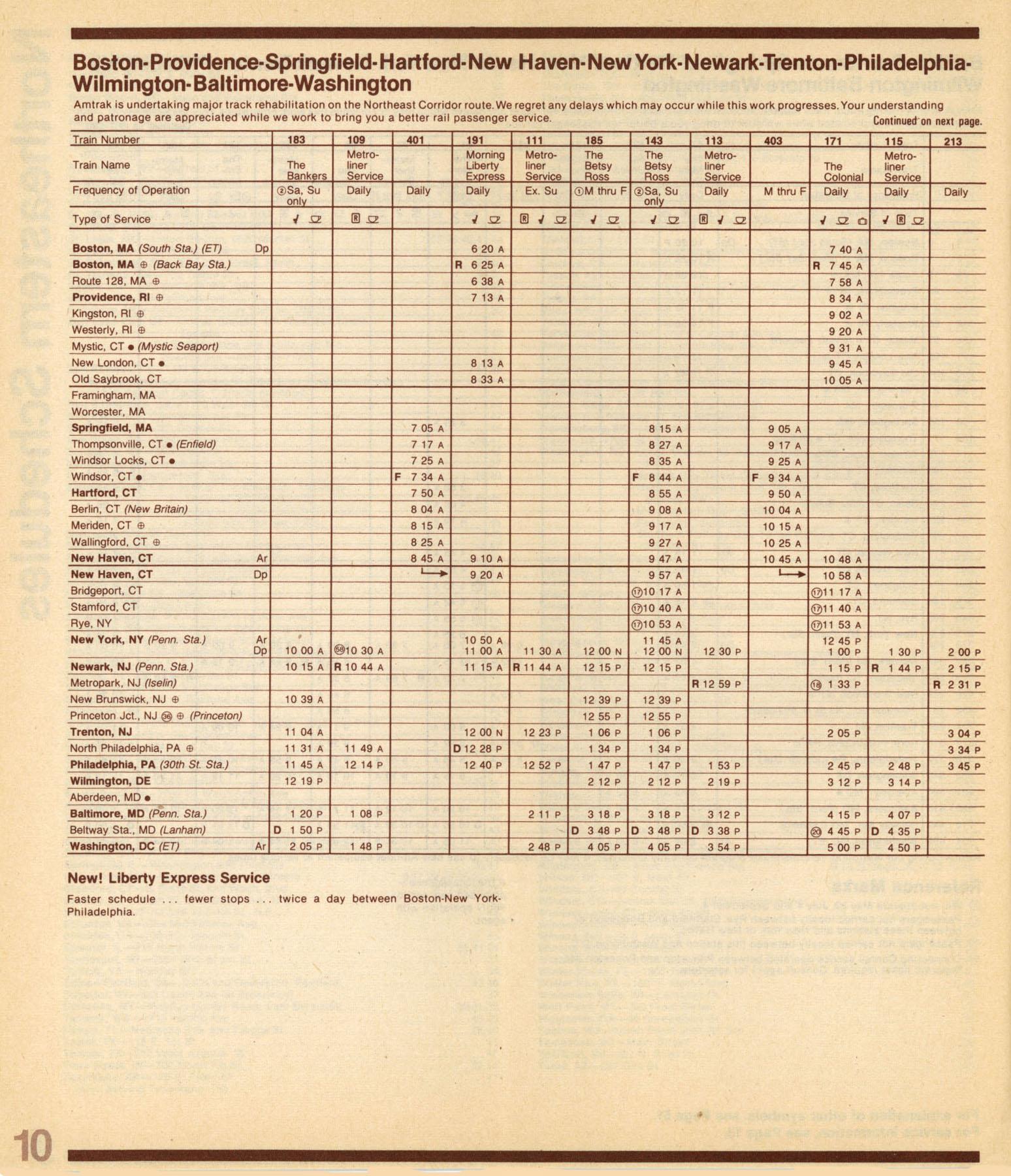 This timetable image is ©1978 National Railroad Passenger Corporation (Amtrak).