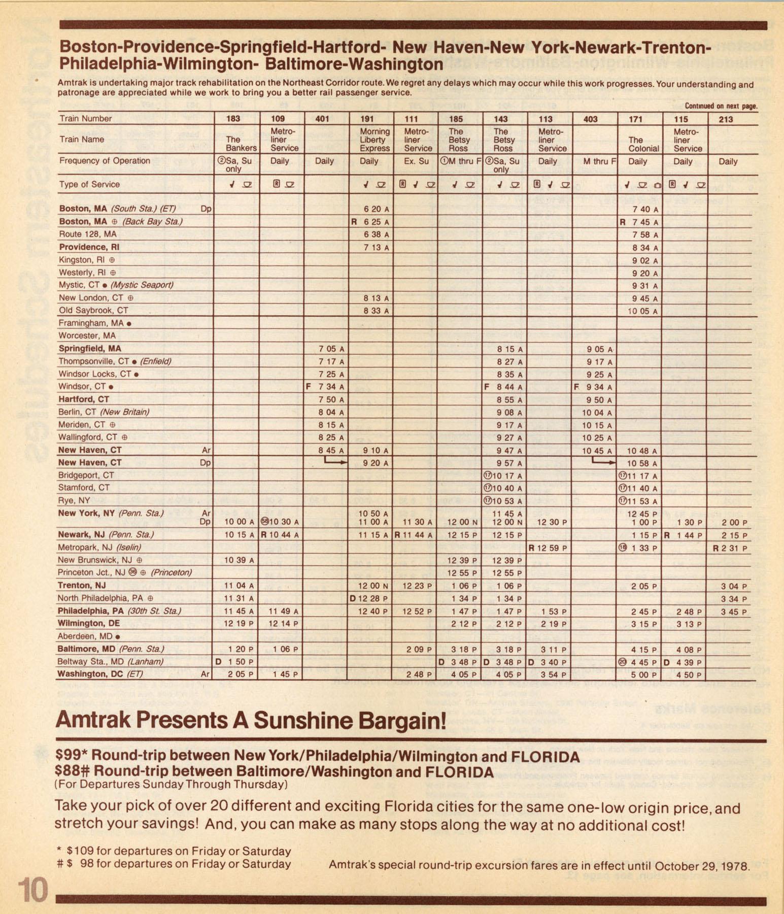 This timetable image is ©1978 National Railroad Passenger Corporation (Amtrak).