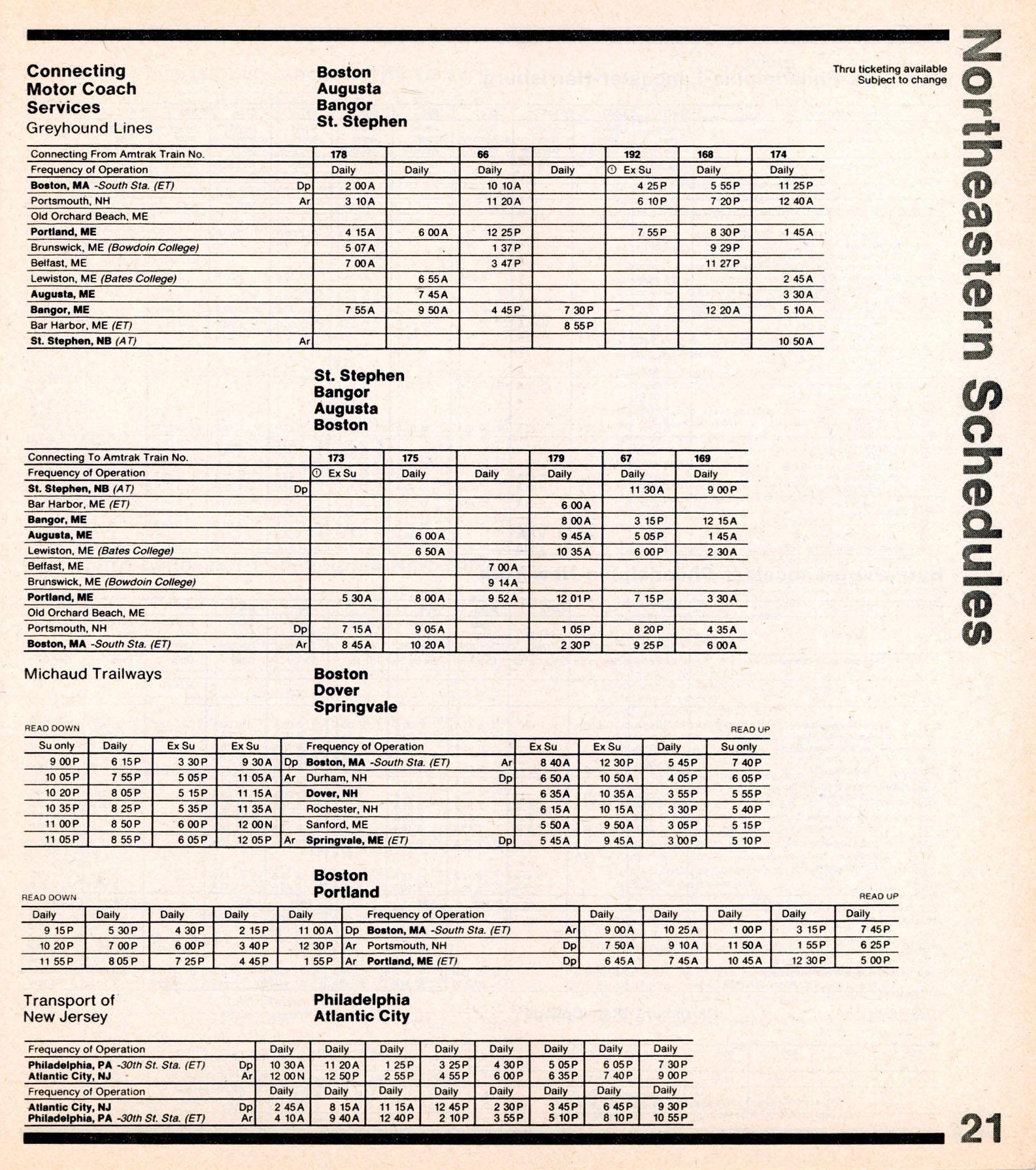 This timetable image is ©1981 National Railroad Passenger Corporation (Amtrak).