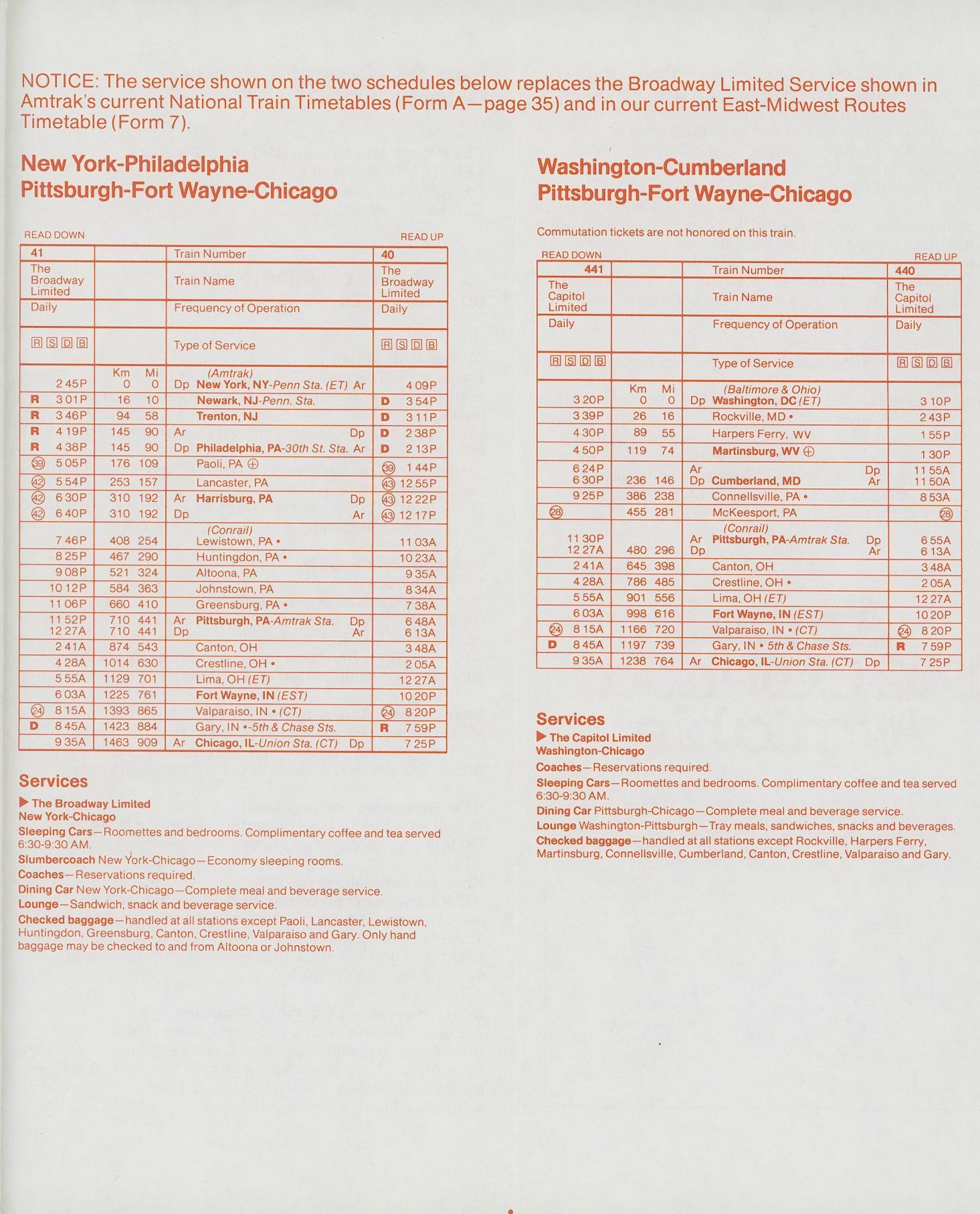 This timetable image is ©1981 National Railroad Passenger Corporation (Amtrak).