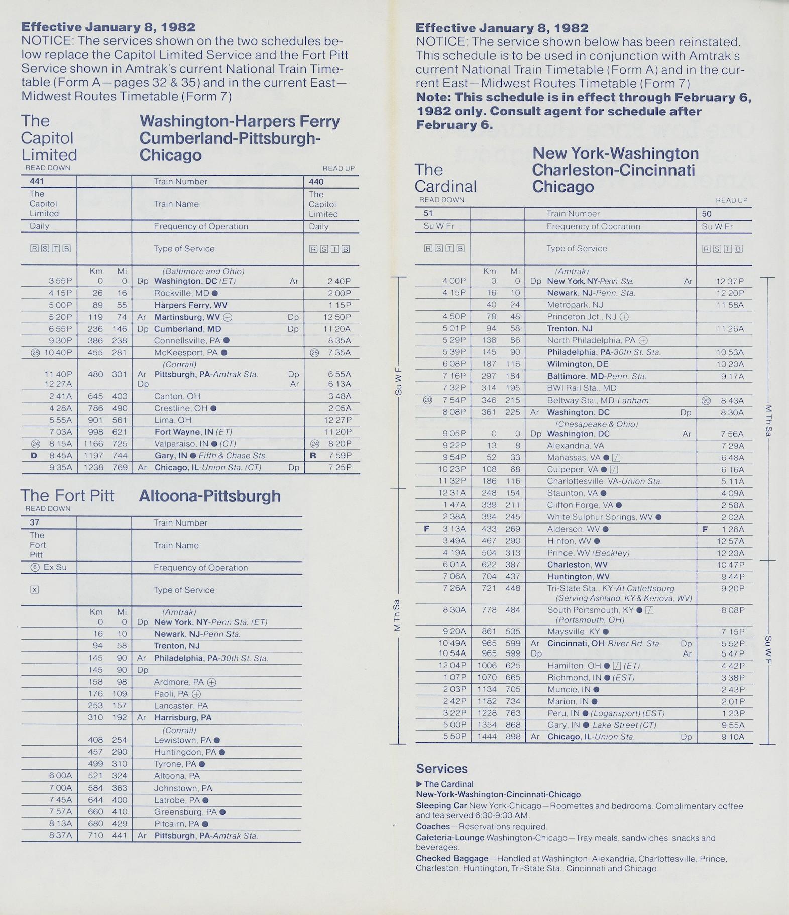 This timetable image is ©1982 National Railroad Passenger Corporation (Amtrak).