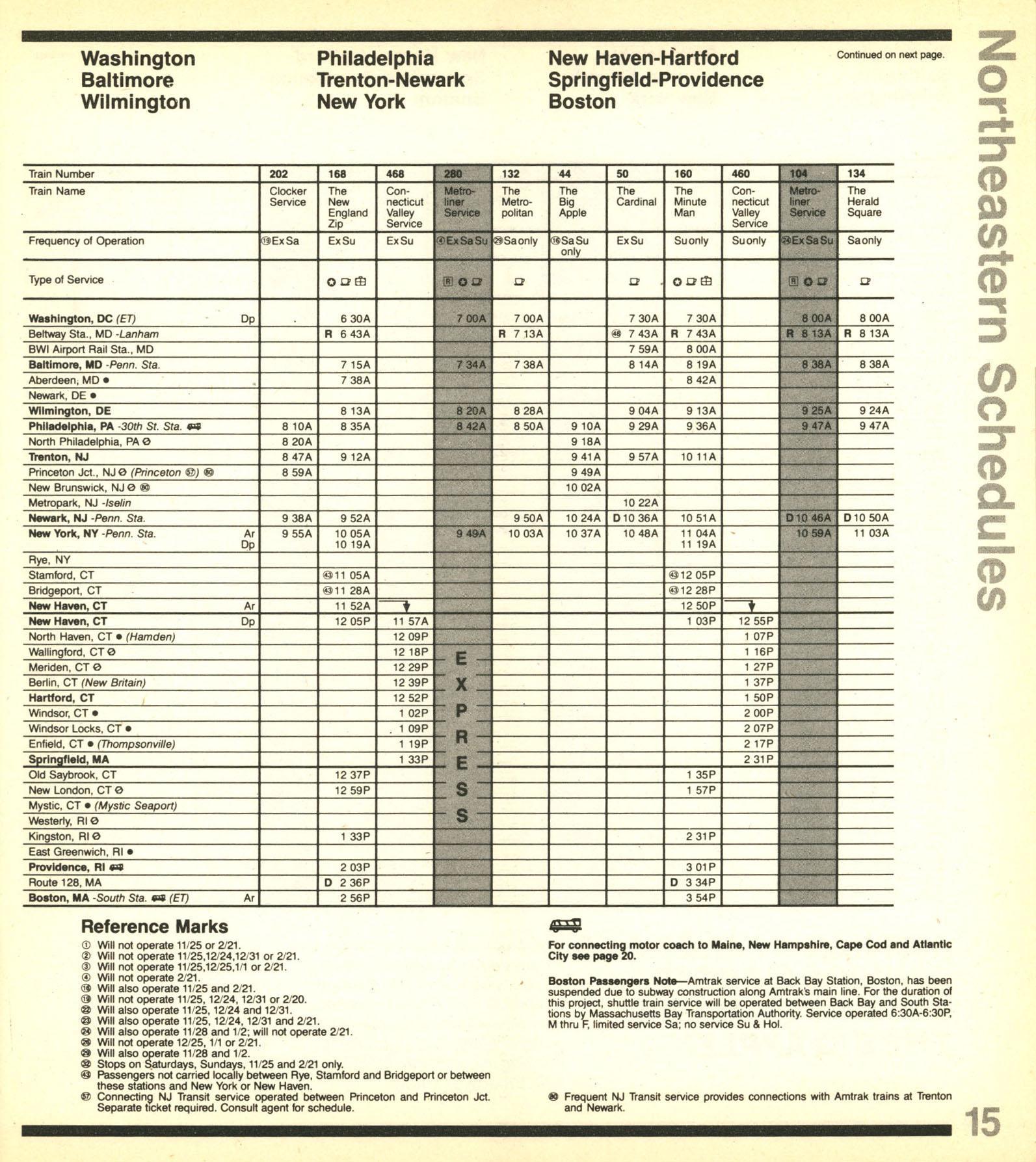 This timetable image is ©1982 National Railroad Passenger Corporation (Amtrak).