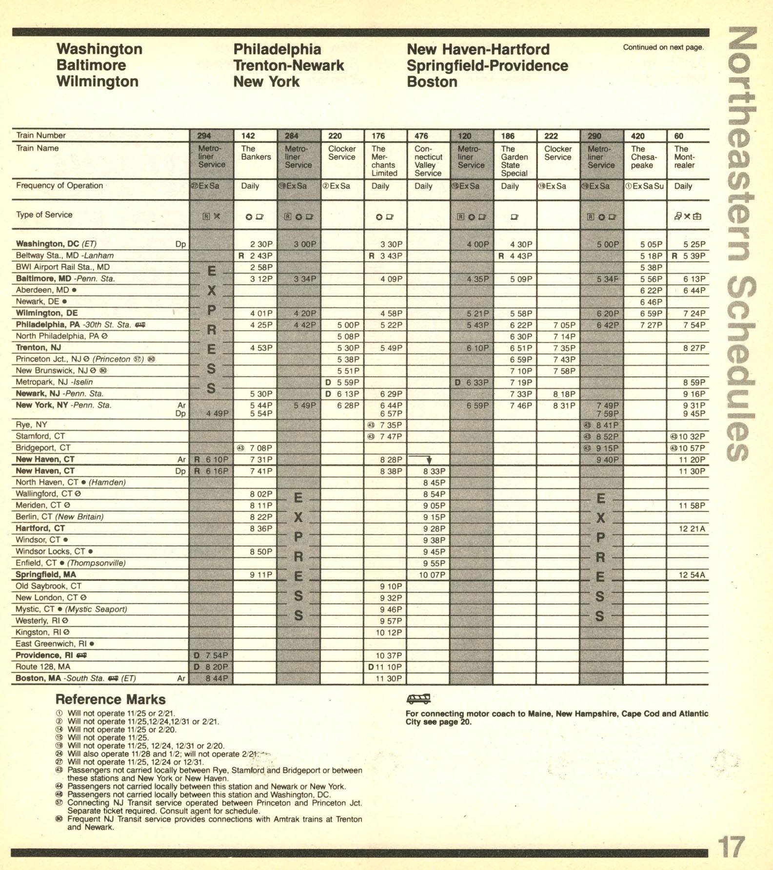 This timetable image is ©1982 National Railroad Passenger Corporation (Amtrak).