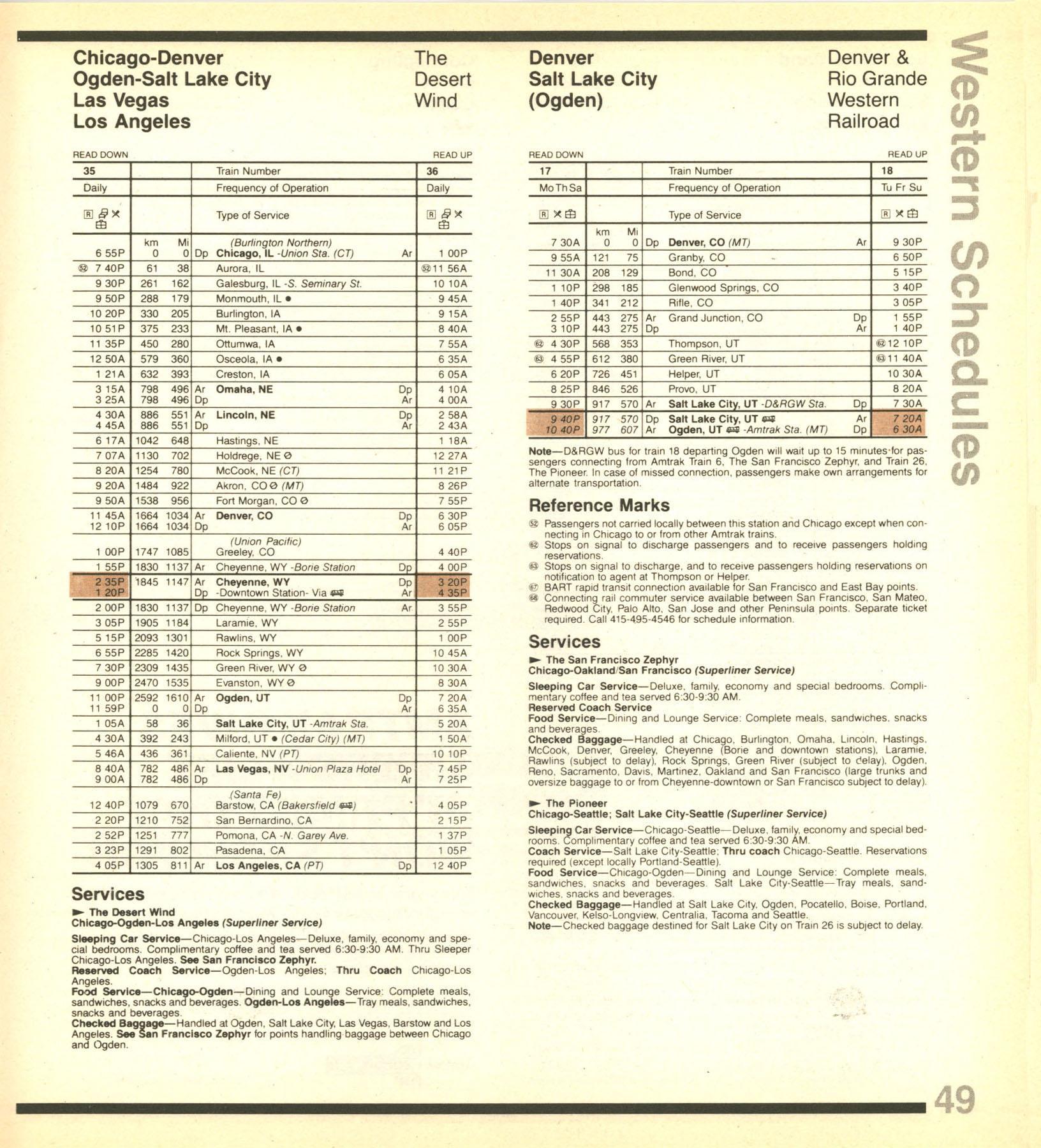 This timetable image is ©1982 National Railroad Passenger Corporation (Amtrak).