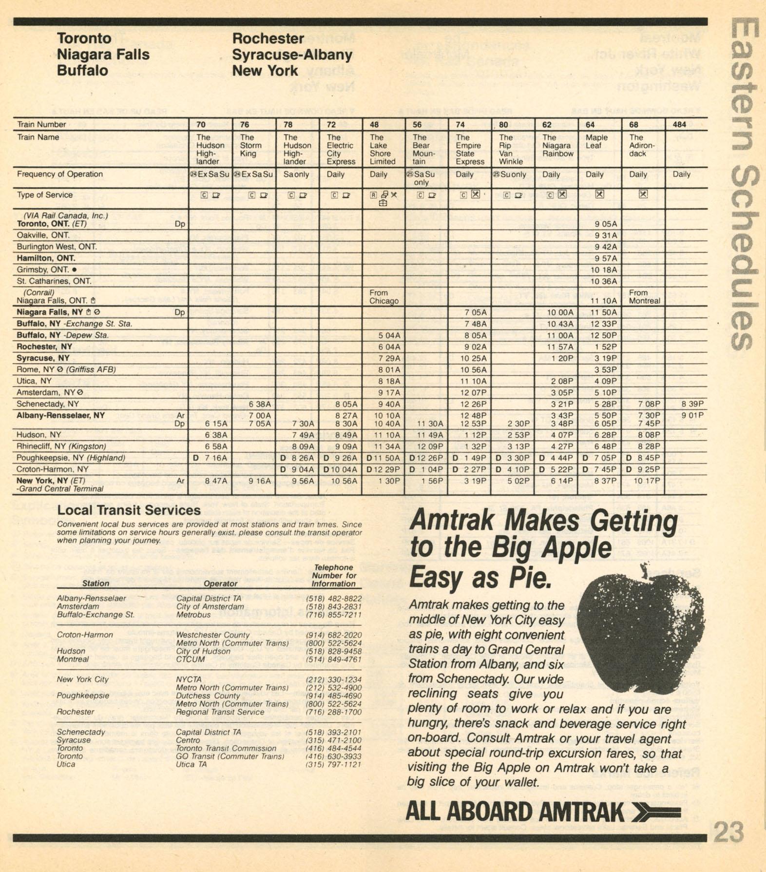 This timetable image is ©1983 National Railroad Passenger Corporation (Amtrak).