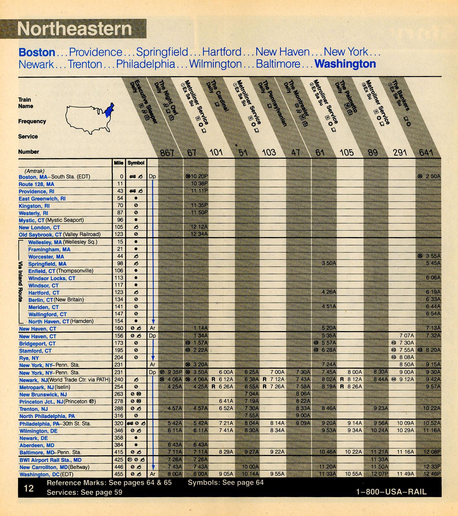 This timetable image is ©1986 National Railroad Passenger Corporation (Amtrak).