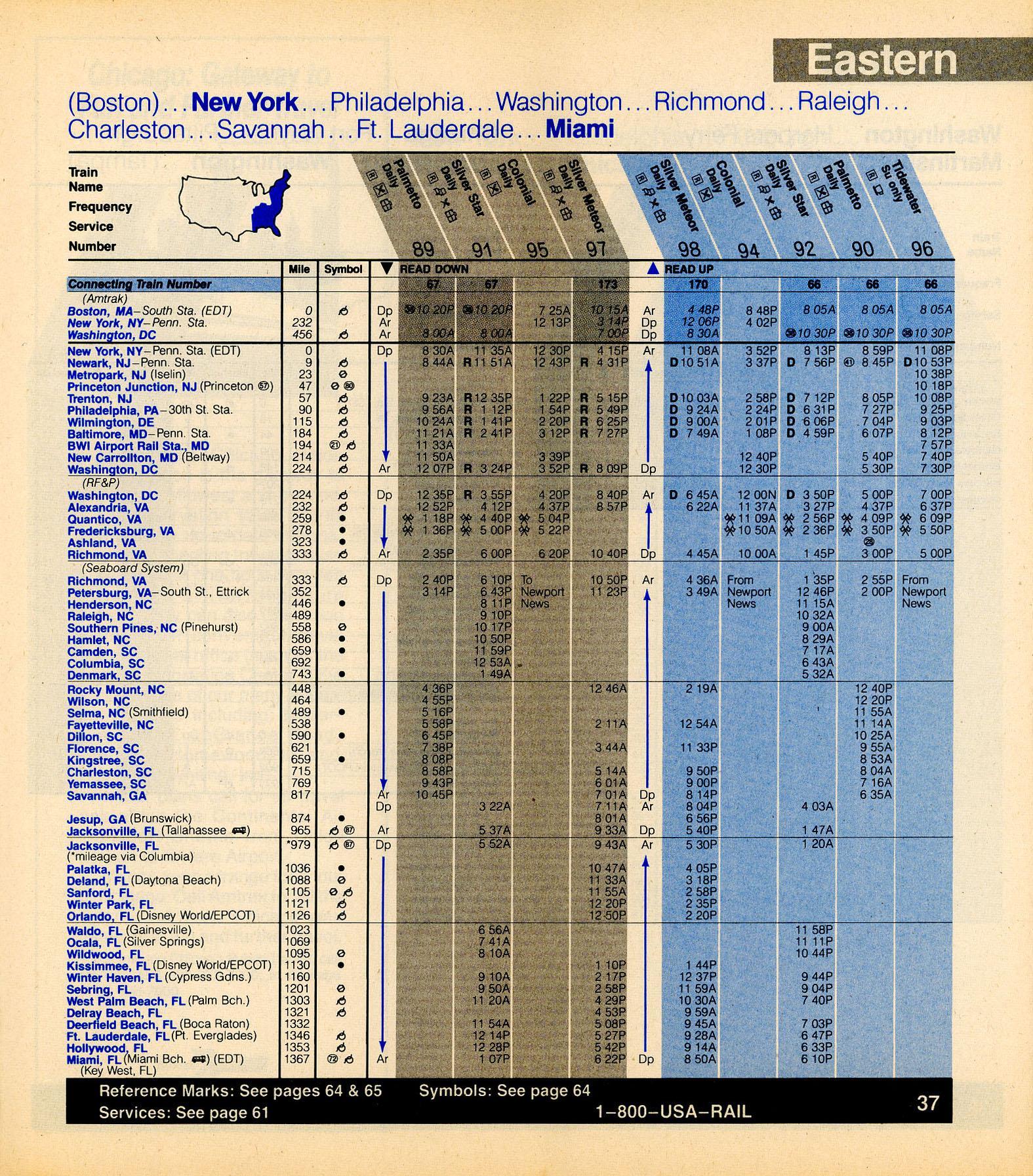 This timetable image is ©1986 National Railroad Passenger Corporation (Amtrak).