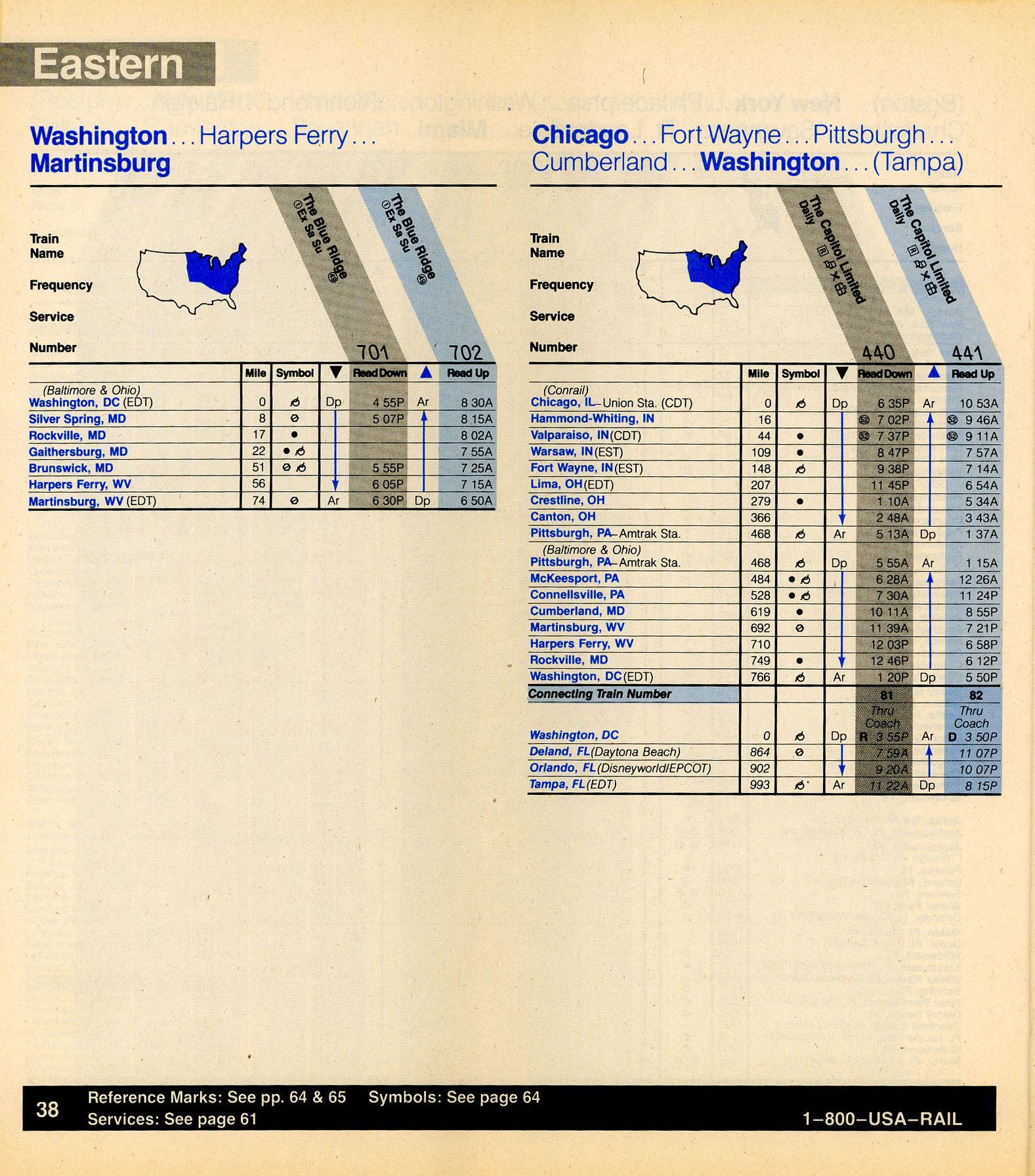 This timetable image is ©1986 National Railroad Passenger Corporation (Amtrak).