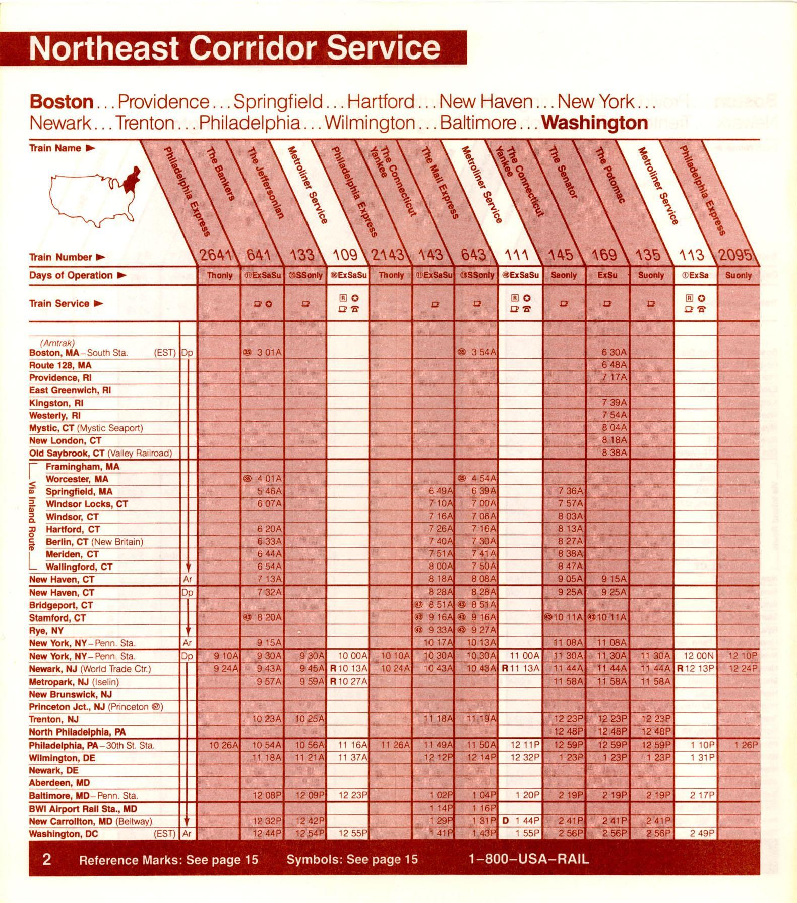 This timetable image is ©1986 National Railroad Passenger Corporation (Amtrak).