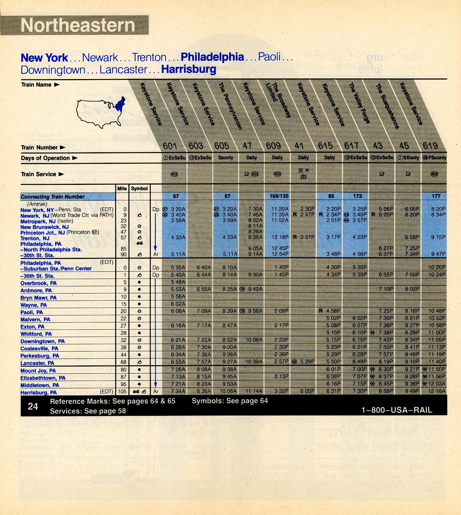 This timetable image is ©1987 National Railroad Passenger Corporation (Amtrak).