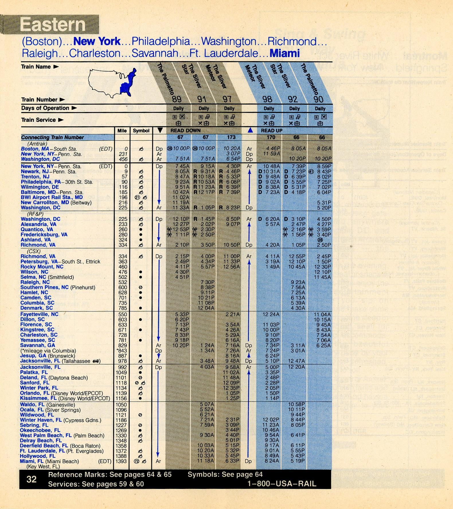 This timetable image is ©1987 National Railroad Passenger Corporation (Amtrak).