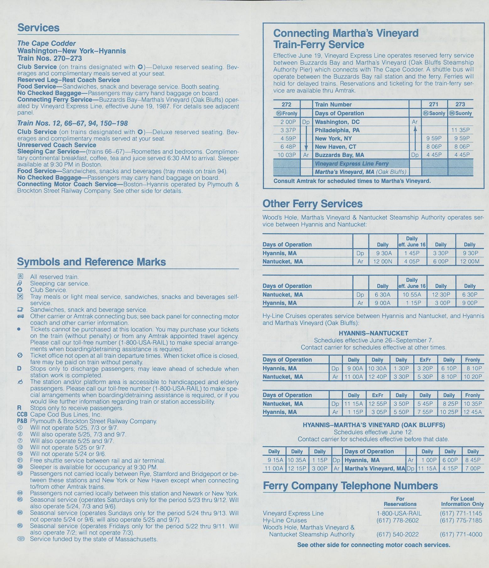 This timetable image is ©1987 National Railroad Passenger Corporation (Amtrak).