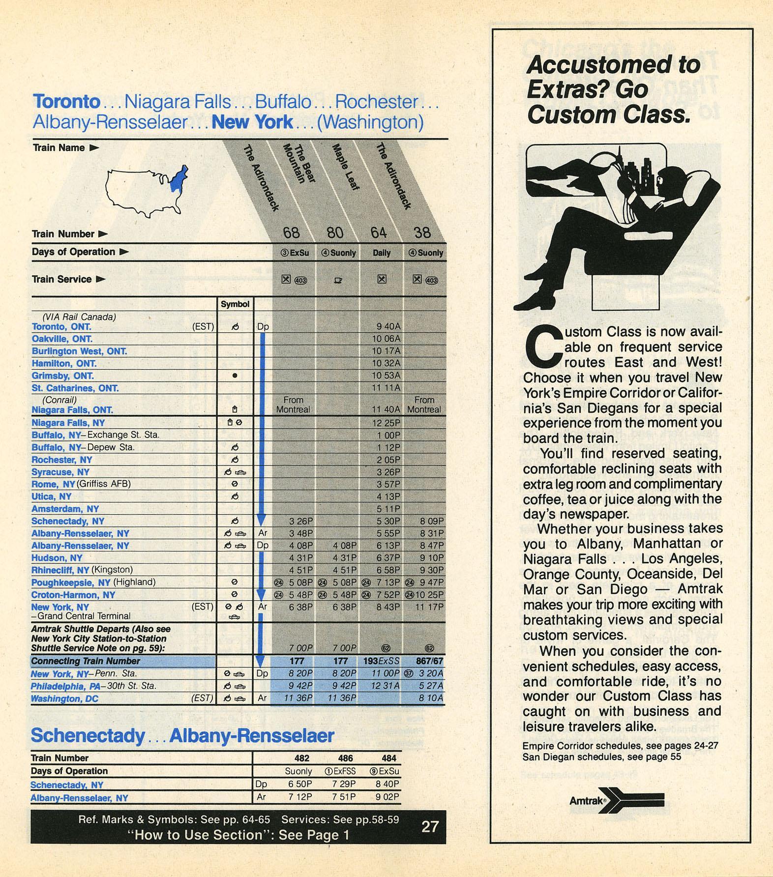 This timetable image is ©1987 National Railroad Passenger Corporation (Amtrak).