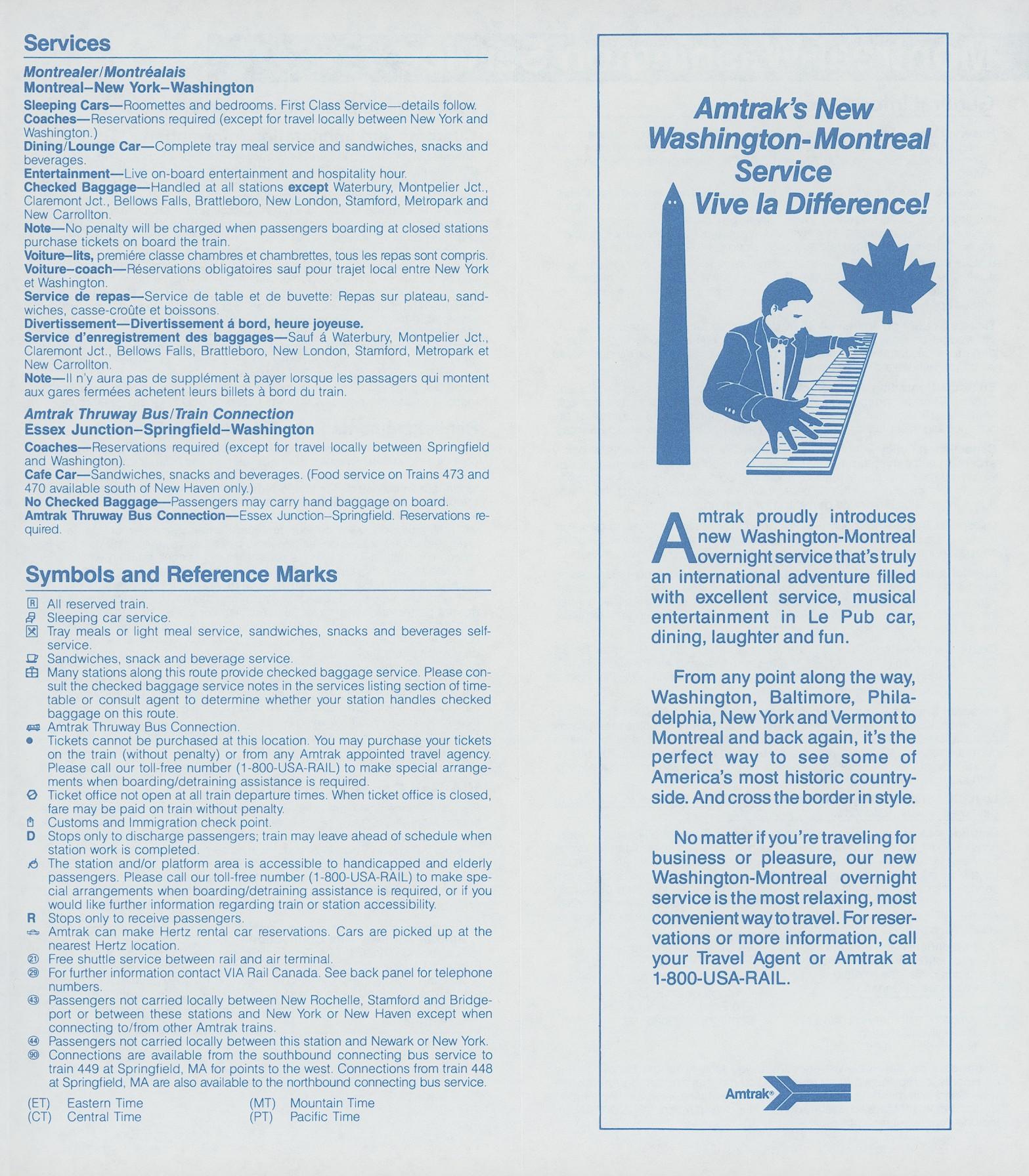 This timetable image is ©1989 National Railroad Passenger Corporation (Amtrak).