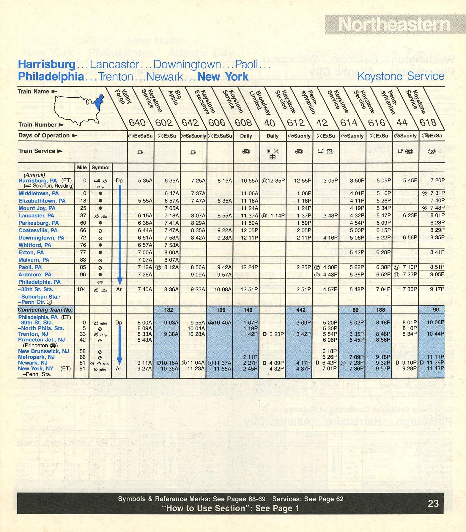 This timetable image is ©1989 National Railroad Passenger Corporation (Amtrak).