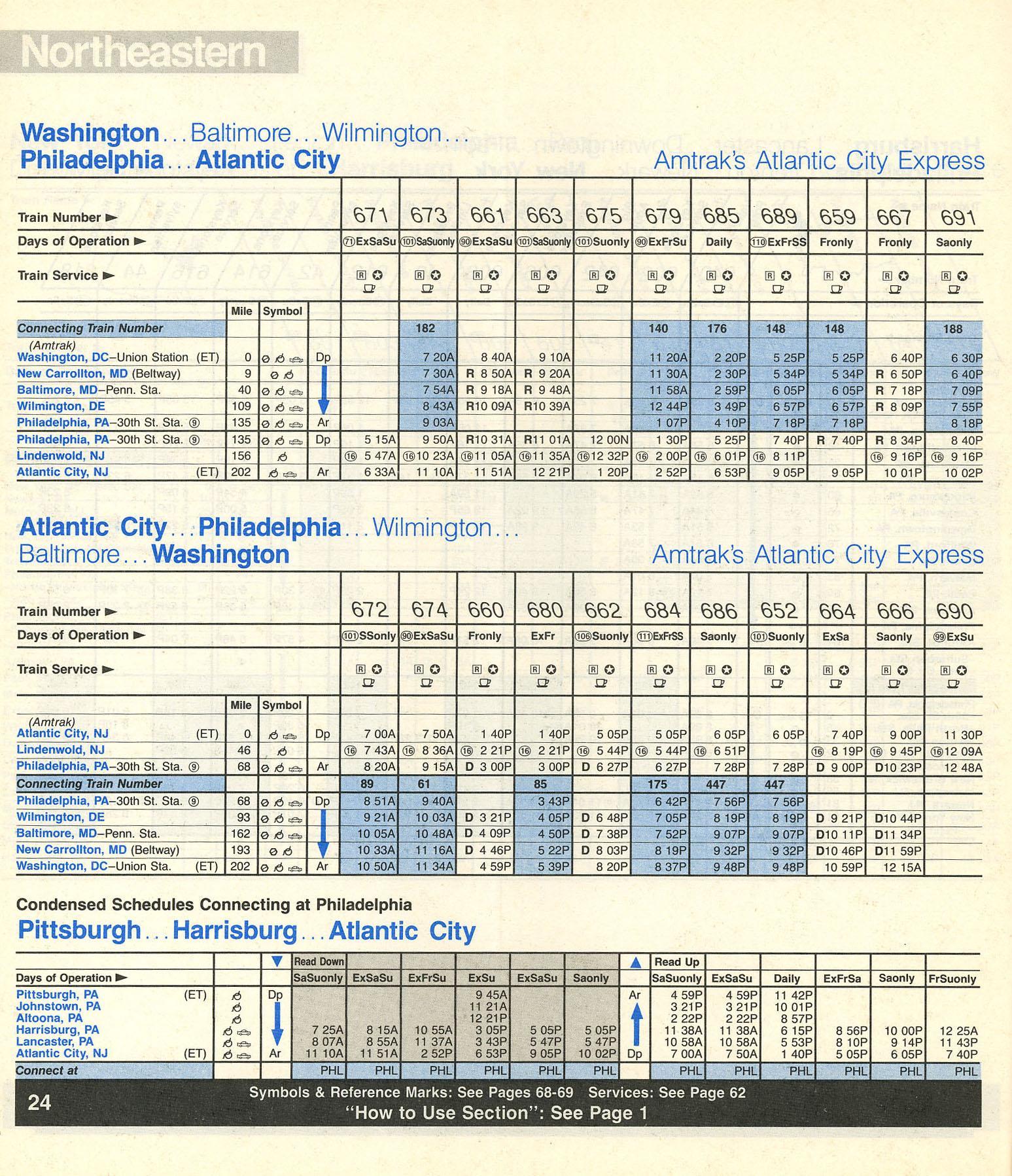 This timetable image is ©1989 National Railroad Passenger Corporation (Amtrak).