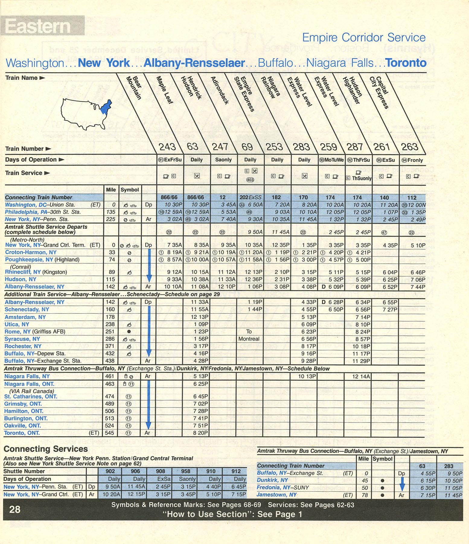 This timetable image is ©1989 National Railroad Passenger Corporation (Amtrak).