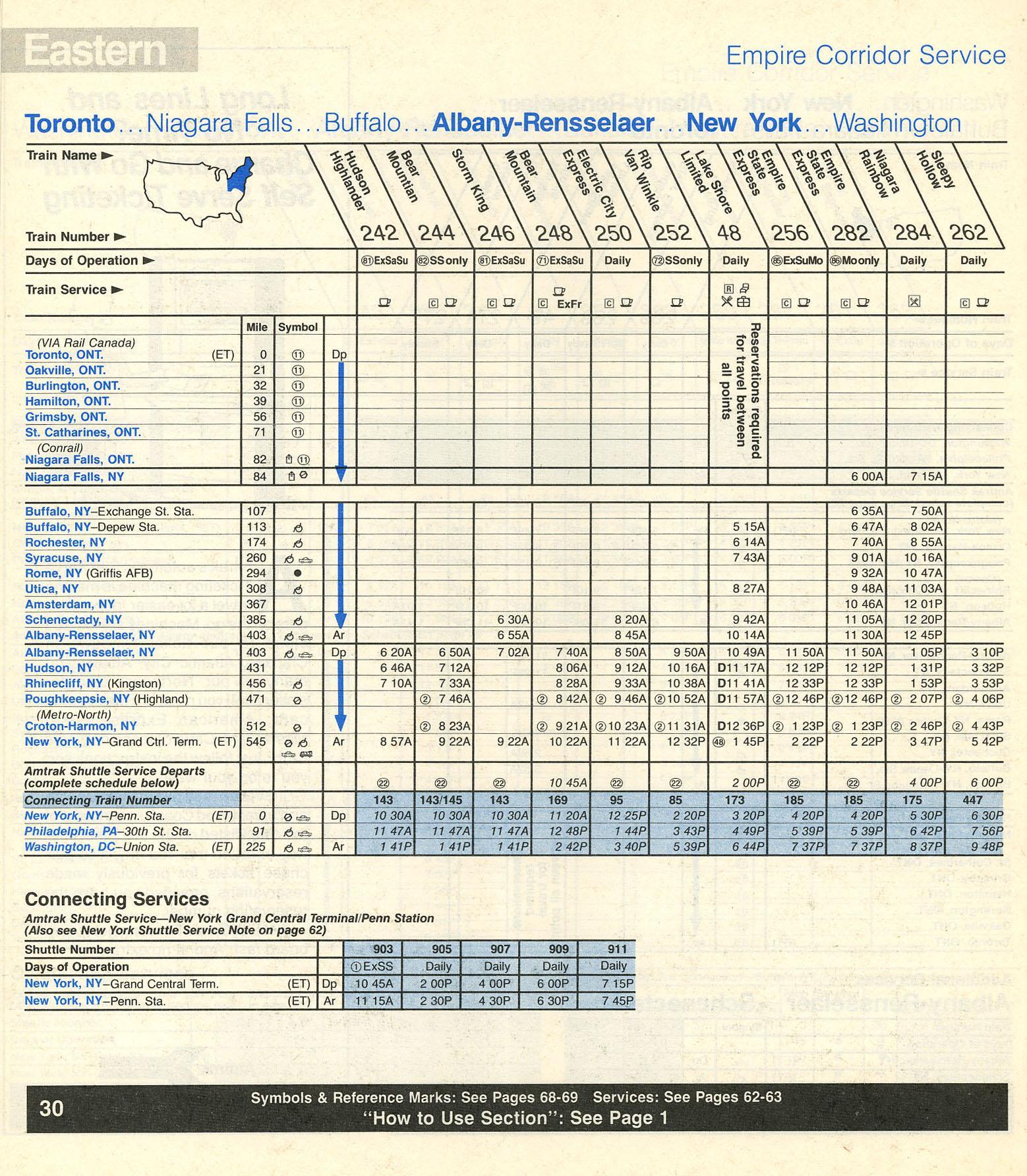 This timetable image is ©1989 National Railroad Passenger Corporation (Amtrak).