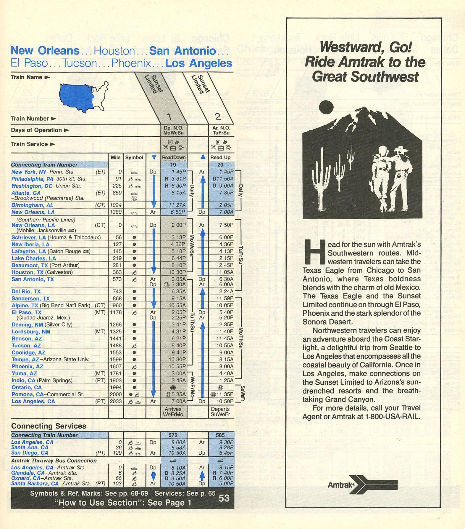 This timetable image is ©1989 National Railroad Passenger Corporation (Amtrak).