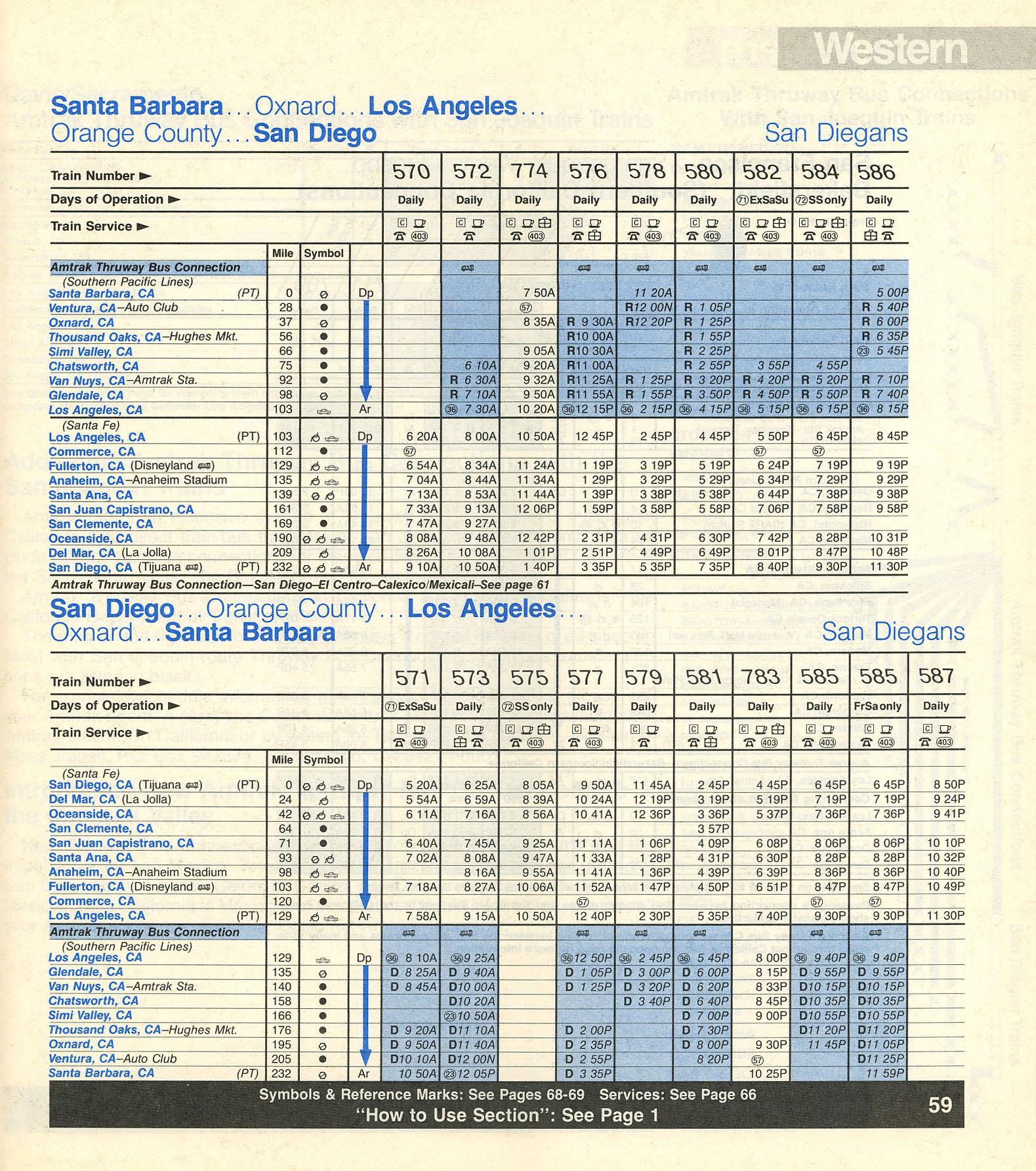 This timetable image is ©1989 National Railroad Passenger Corporation (Amtrak).