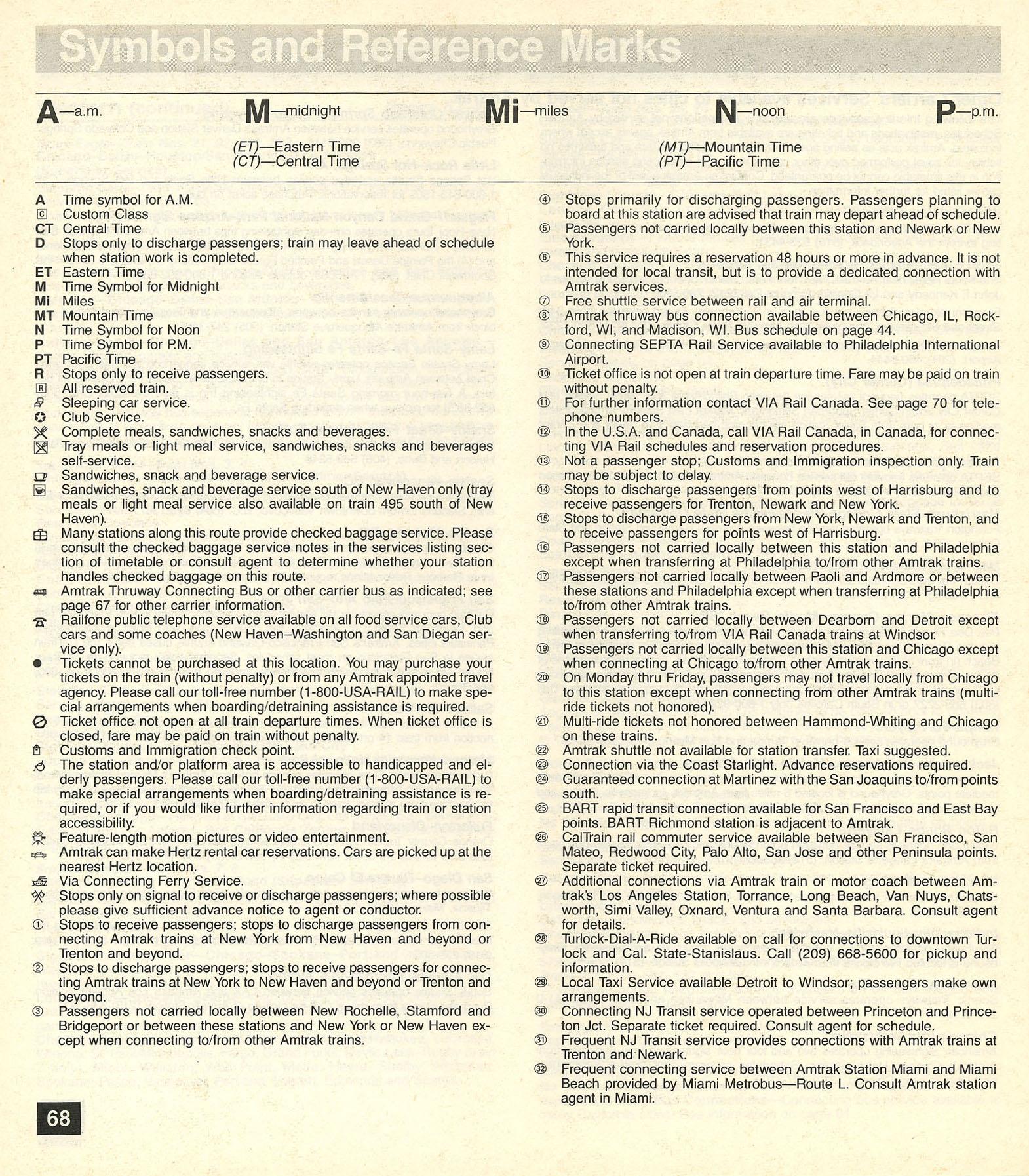 This timetable image is ©1989 National Railroad Passenger Corporation (Amtrak).
