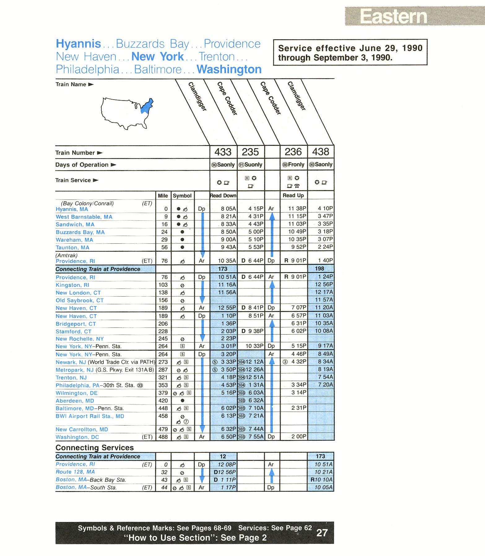 This timetable image is ©1990 National Railroad Passenger Corporation (Amtrak).