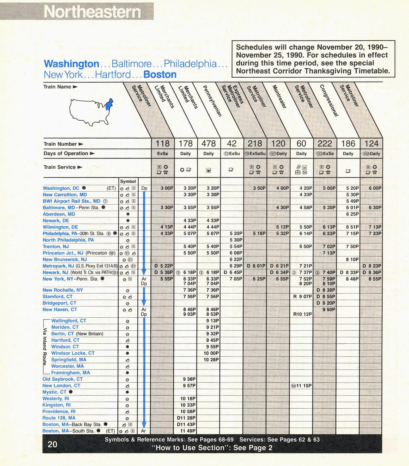 This timetable image is ©1990 National Railroad Passenger Corporation (Amtrak).
