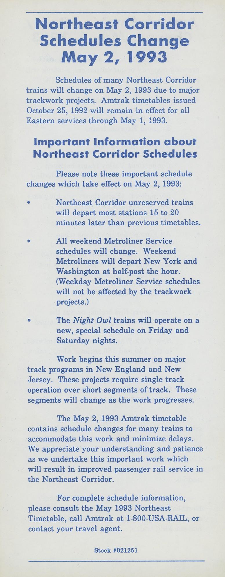 This timetable image is ©1993 National Railroad Passenger Corporation (Amtrak).