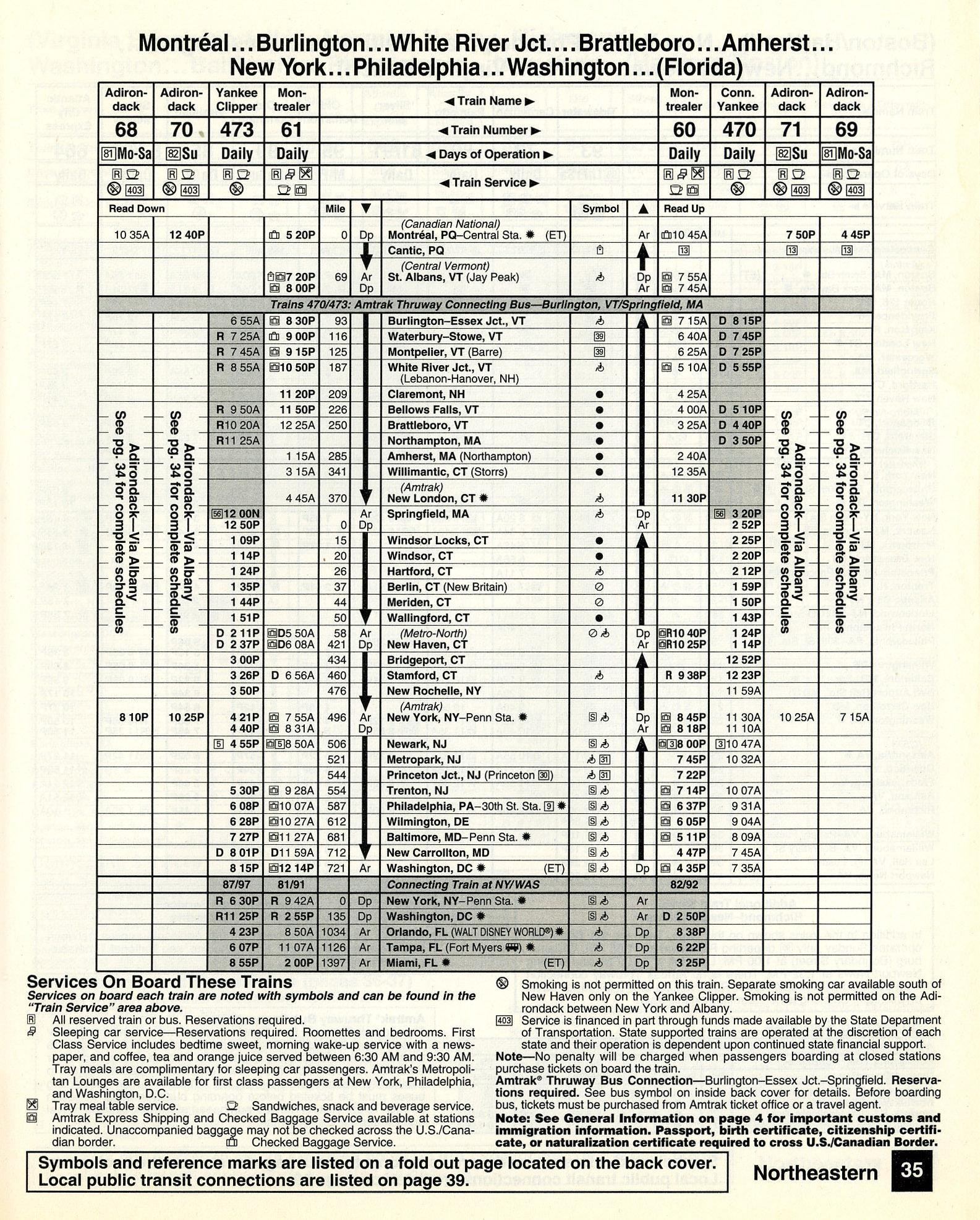 This timetable image is ©1993 National Railroad Passenger Corporation (Amtrak).
