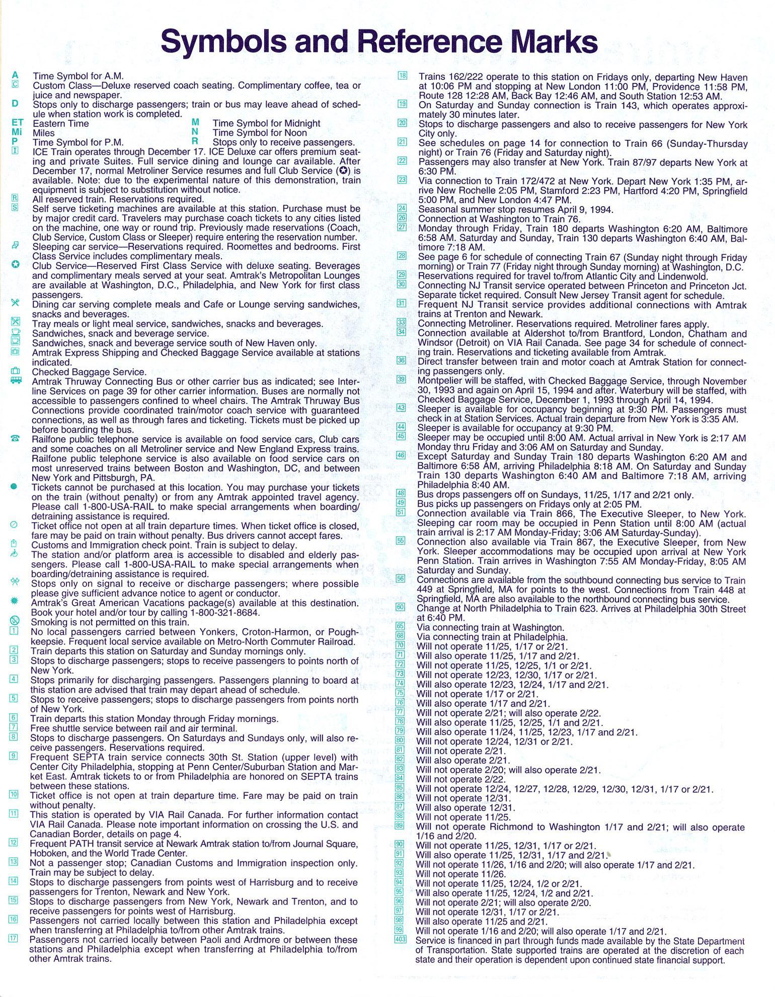 This timetable image is ©1993 National Railroad Passenger Corporation (Amtrak).