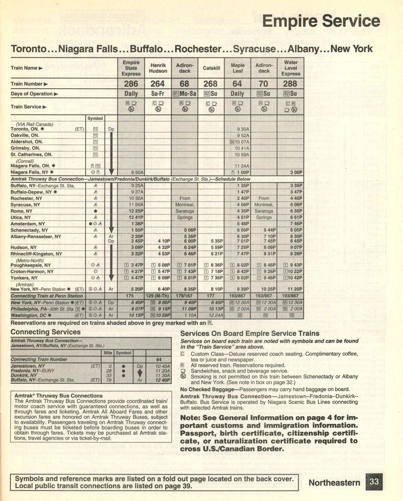 This timetable image is ©1993 National Railroad Passenger Corporation (Amtrak).