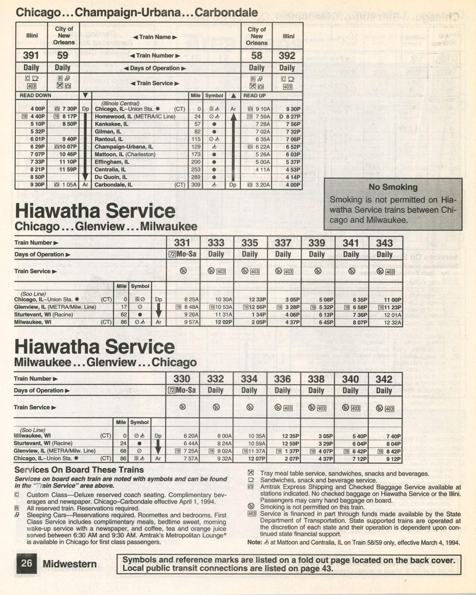This timetable image is ©1993 National Railroad Passenger Corporation (Amtrak).