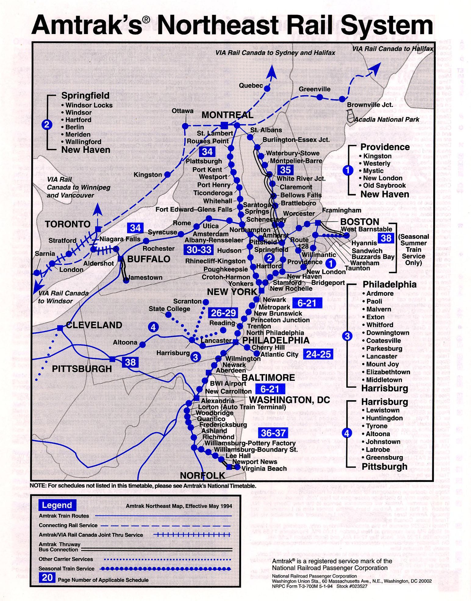 This timetable image is ©1994 National Railroad Passenger Corporation (Amtrak).