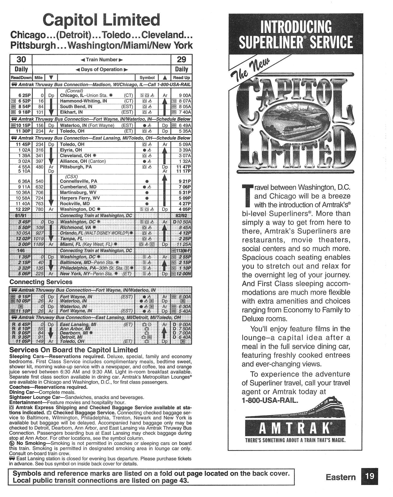 This timetable image is ©1994 National Railroad Passenger Corporation (Amtrak).