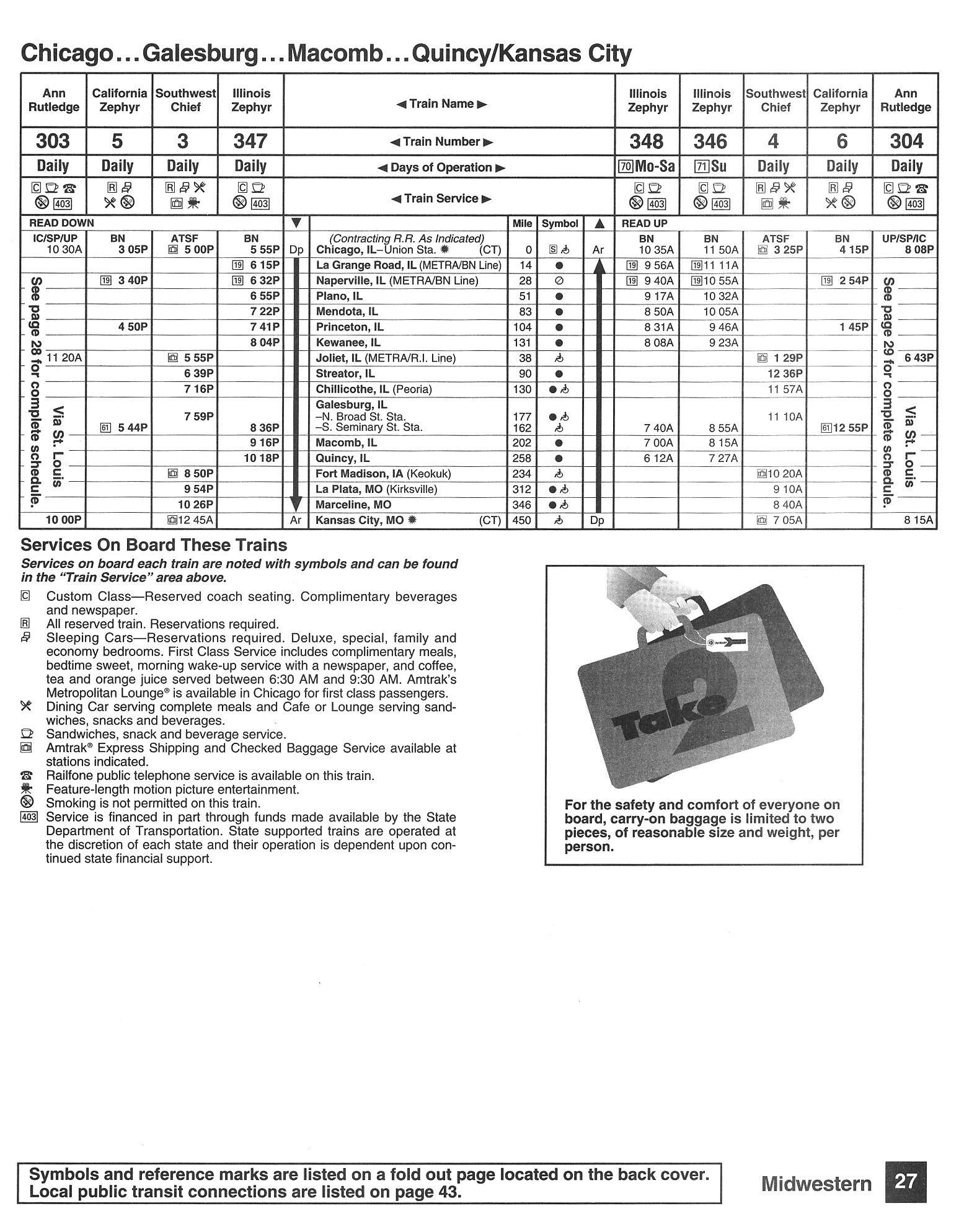 This timetable image is ©1994 National Railroad Passenger Corporation (Amtrak).