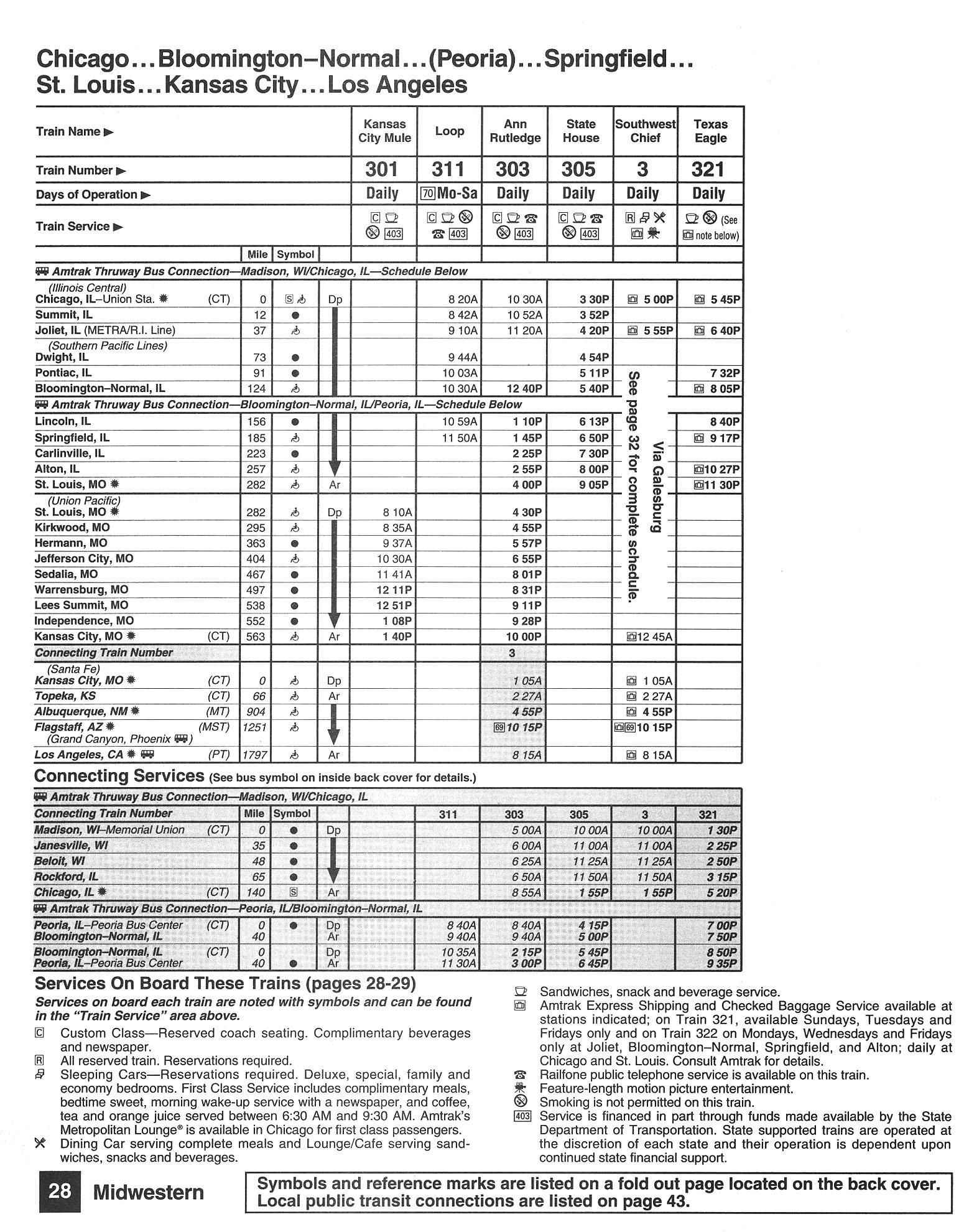 This timetable image is ©1994 National Railroad Passenger Corporation (Amtrak).