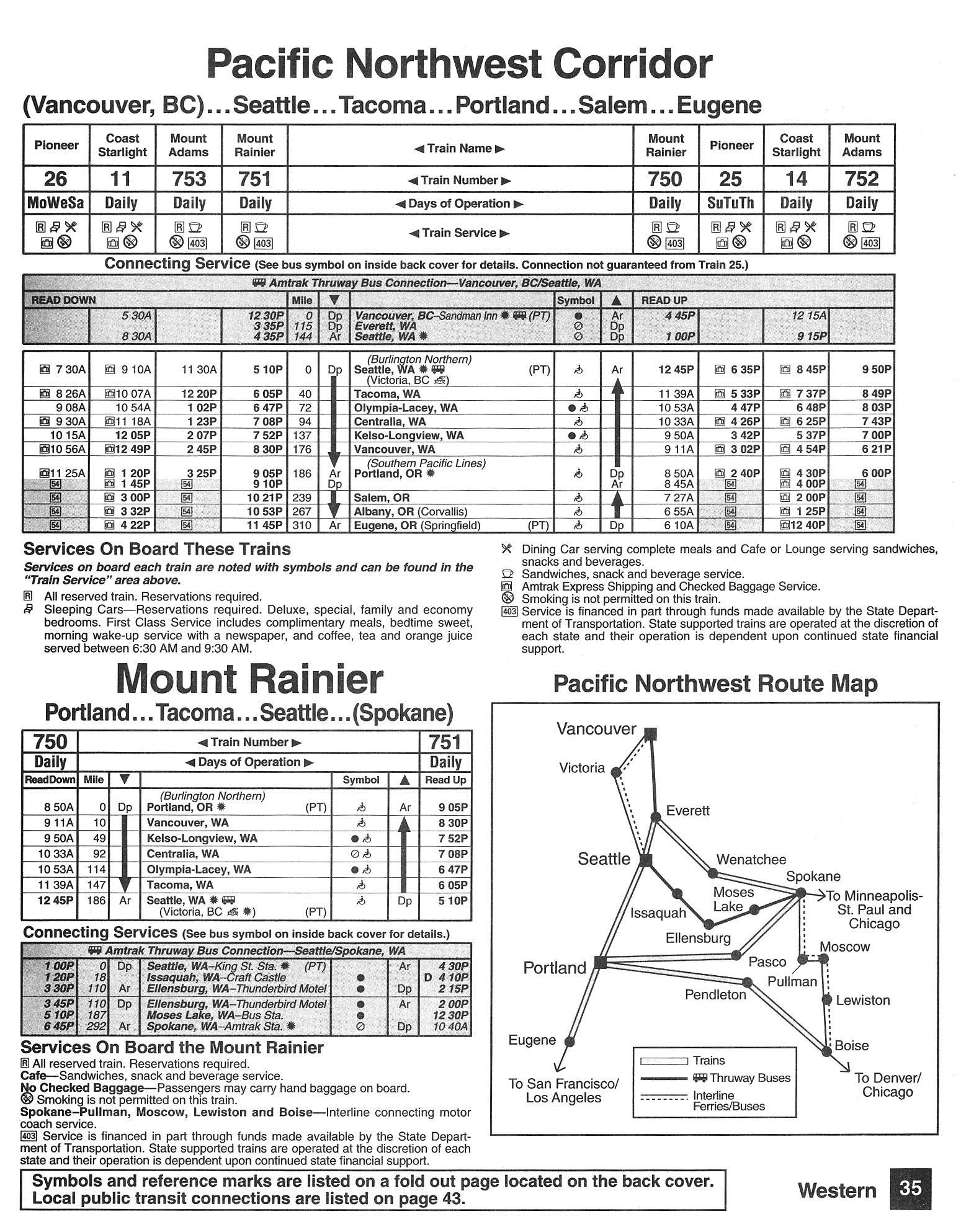 This timetable image is ©1994 National Railroad Passenger Corporation (Amtrak).
