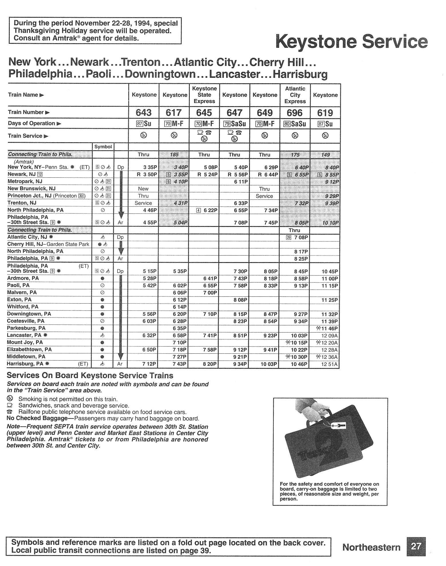 This timetable image is ©1994 National Railroad Passenger Corporation (Amtrak).